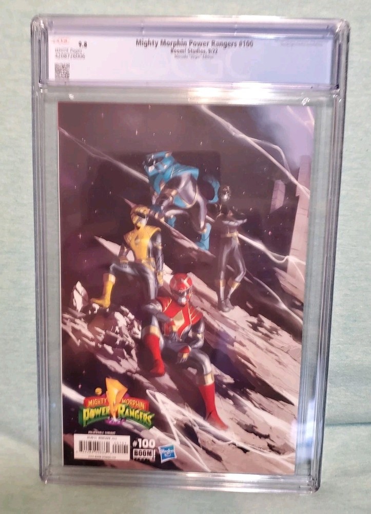 The Mighty Morphin Power Rangers #100 CGC 9.8 Mercado Wraparound Virgin Cover is a highly sought-after comic book featuring the iconic Ranger characters from the popular Power Rangers universe. This special issue, published by BOOM! Studios in 2022, showcases stunning artwork by Miguel Mercado and includes a unique wraparound cover that is unlockable. With a high CGC grade of 9.8, this comic is a valuable addition to any collector's library, especially for fans of US Comics and superhero genres.