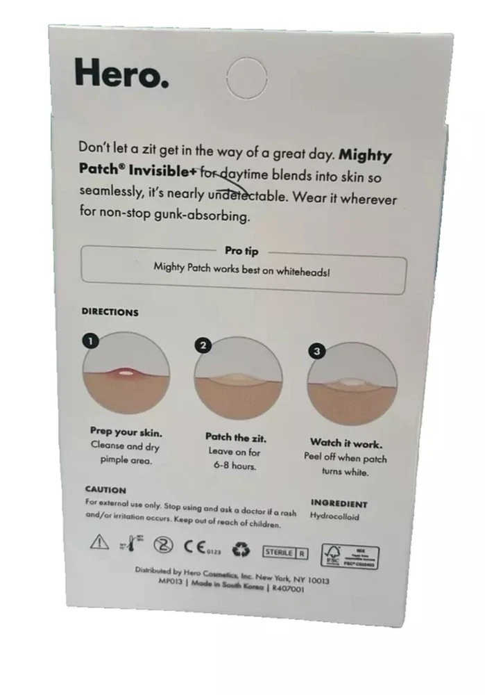Mighty Patch Invisible+ Hydrocolloid Acne Pimple Patches (24 Count) Exp 2027