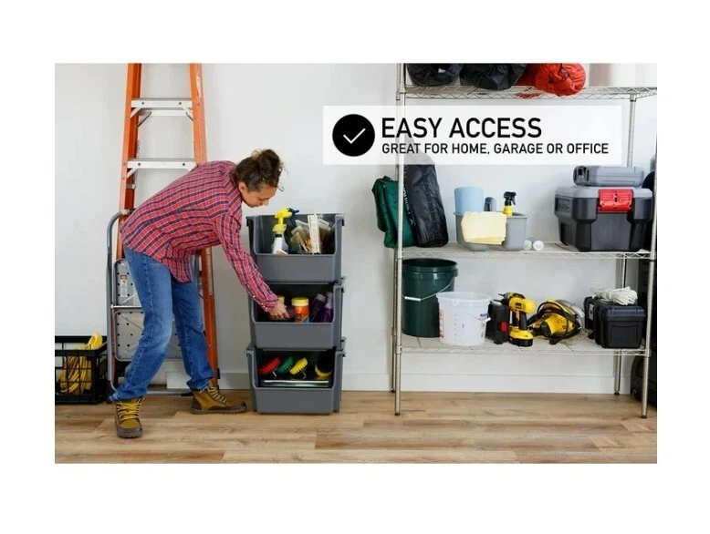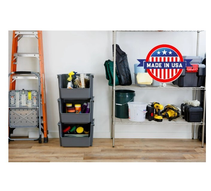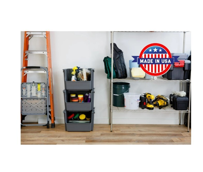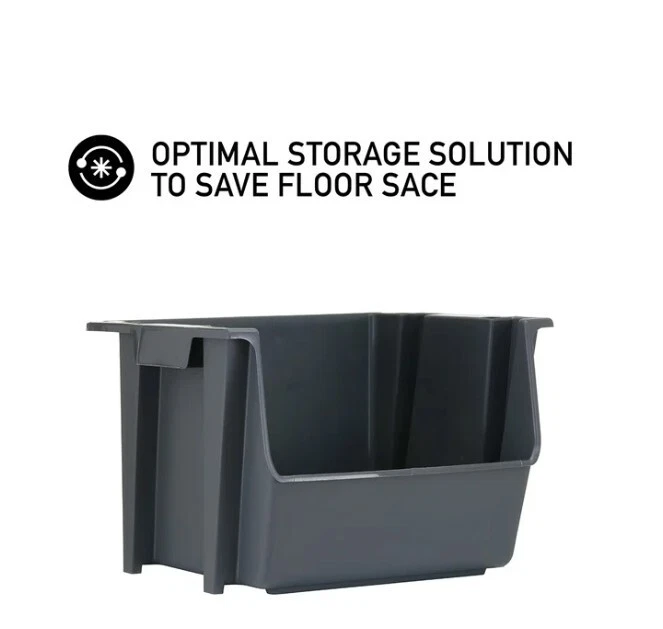 HomeMighty Tuff SB0161 Large Nesting Stack Storage Bin All Plastic Gray