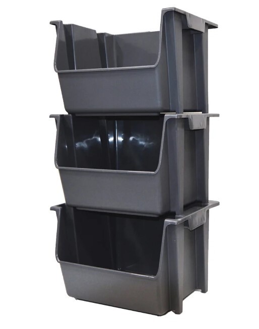Mighty Tuff SB0161 Large Nesting Stack Storage Bin All Plastic Gray