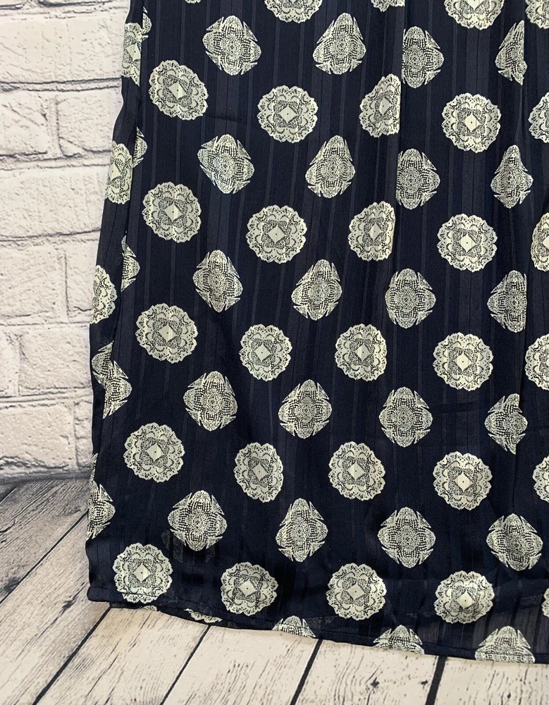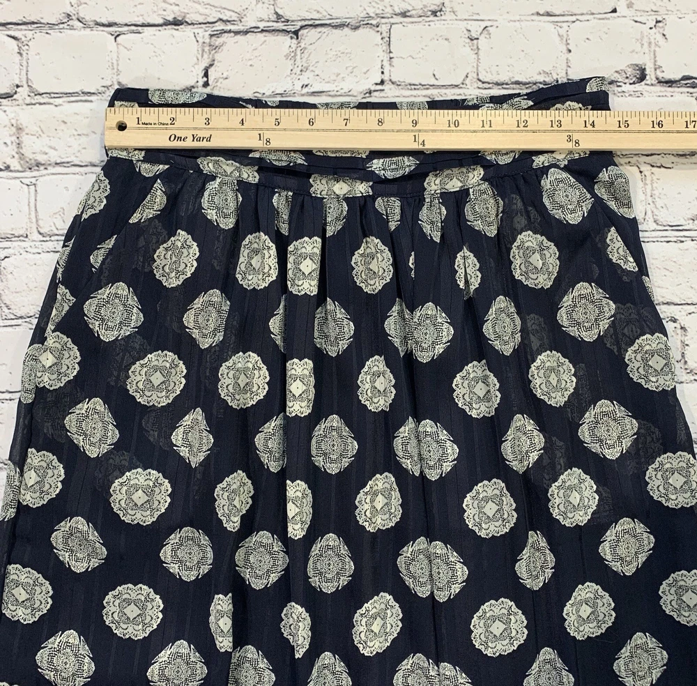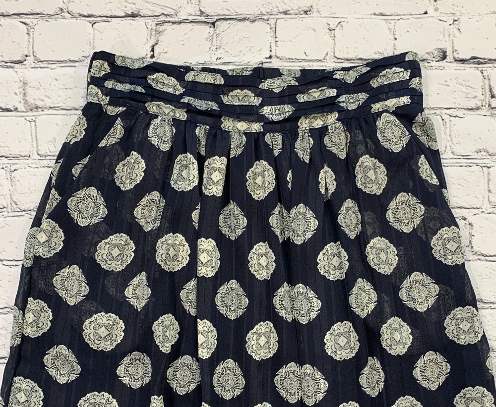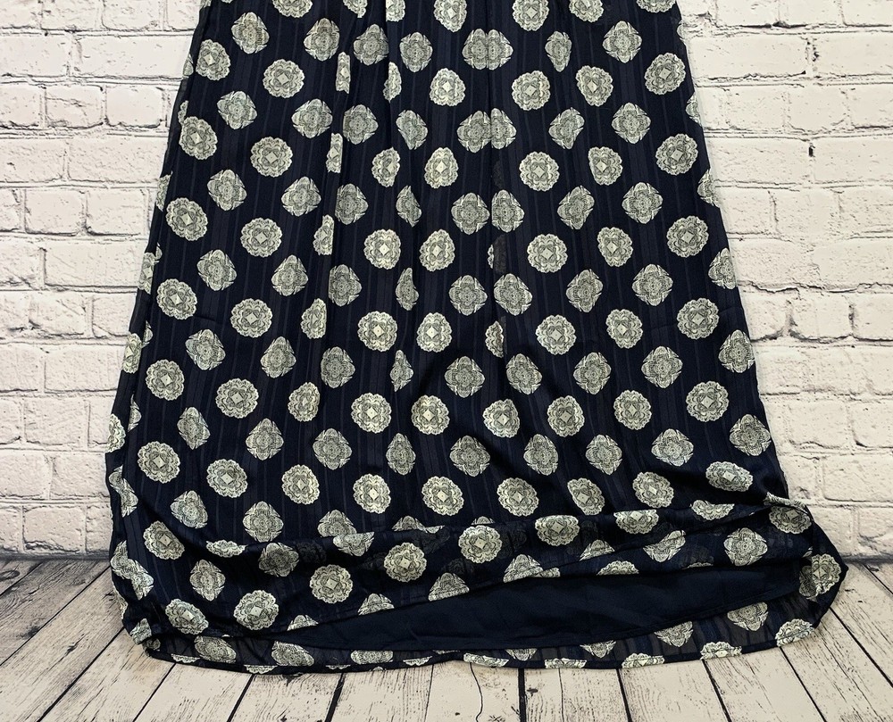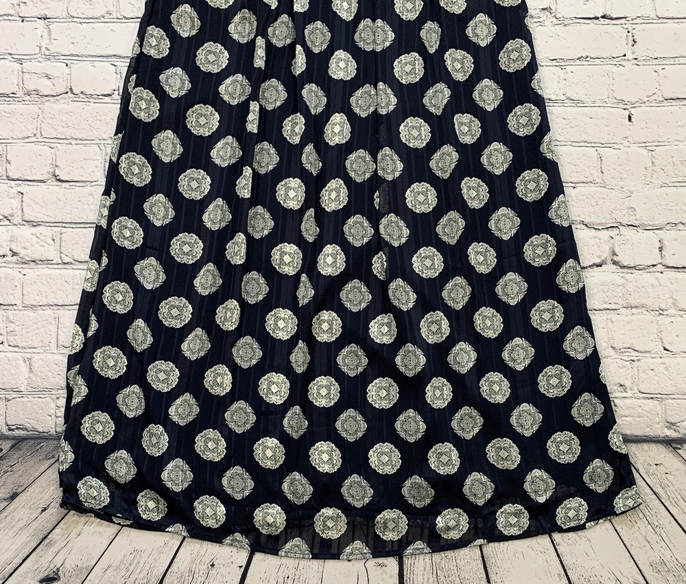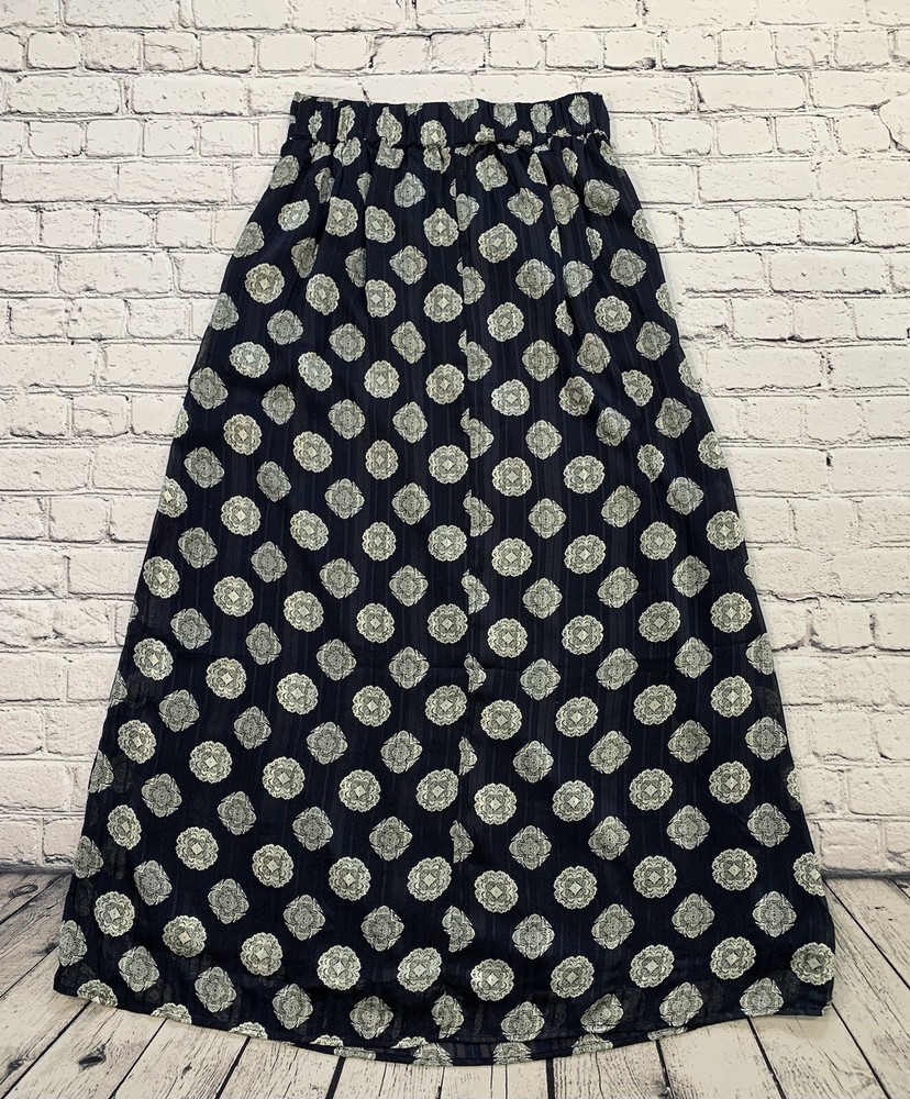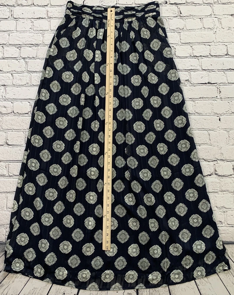 Mika Rose Women’s Size M Maxi Long Navy Blue Skirt Boho White Geometric Pattern