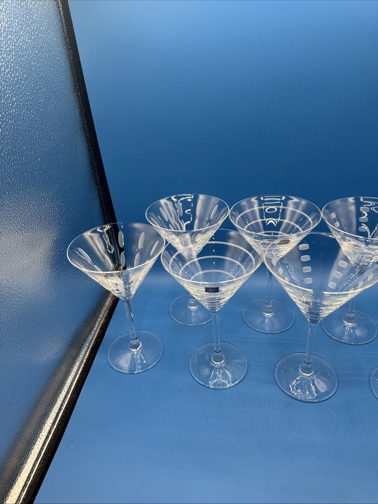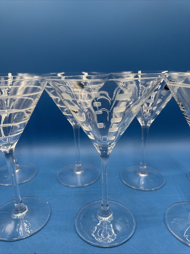 This lot of 8 Mikasa "Cheers" Martini Glasses are made of clear glass. Each glass is designed in a classic martini style, perfect for serving your favorite cocktails. The set is ideal for entertaining or adding elegance to your home bar. New. Never been used. Excellent condition. No cracks, damages, or chips. No original box. Some glasses have missing original labels. Please check the pictures carefully as part of the description. Feel free to ask questions if you need more information before you buy it. Thank you for your interest C-11