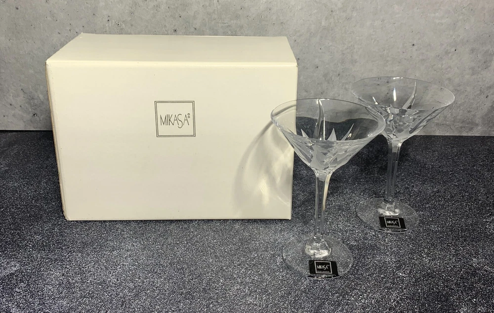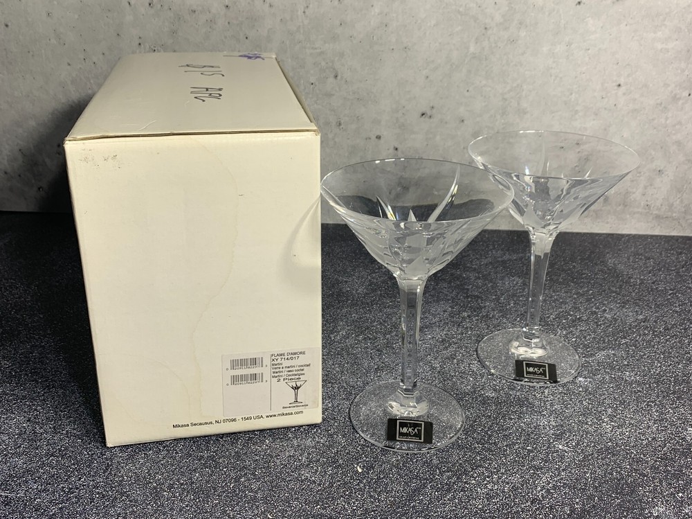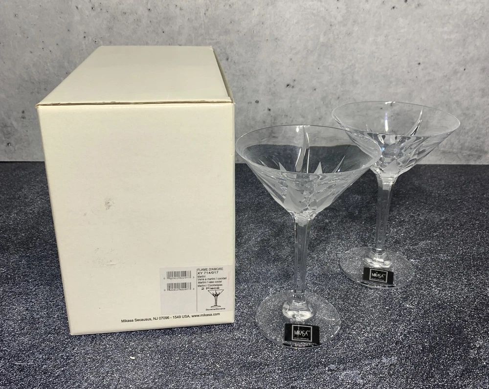 Mikasa Flame D’Amore - 2 Crystal Cordial Cocktail Glasses - Elegant Barware ~7"
