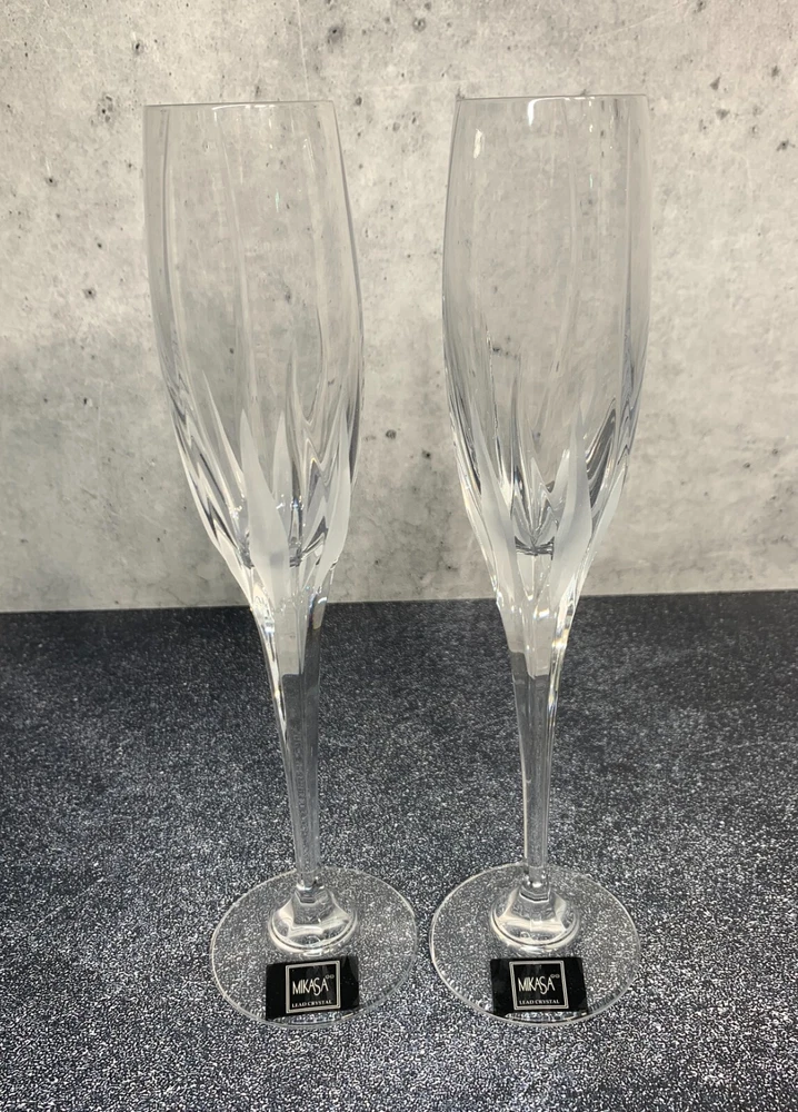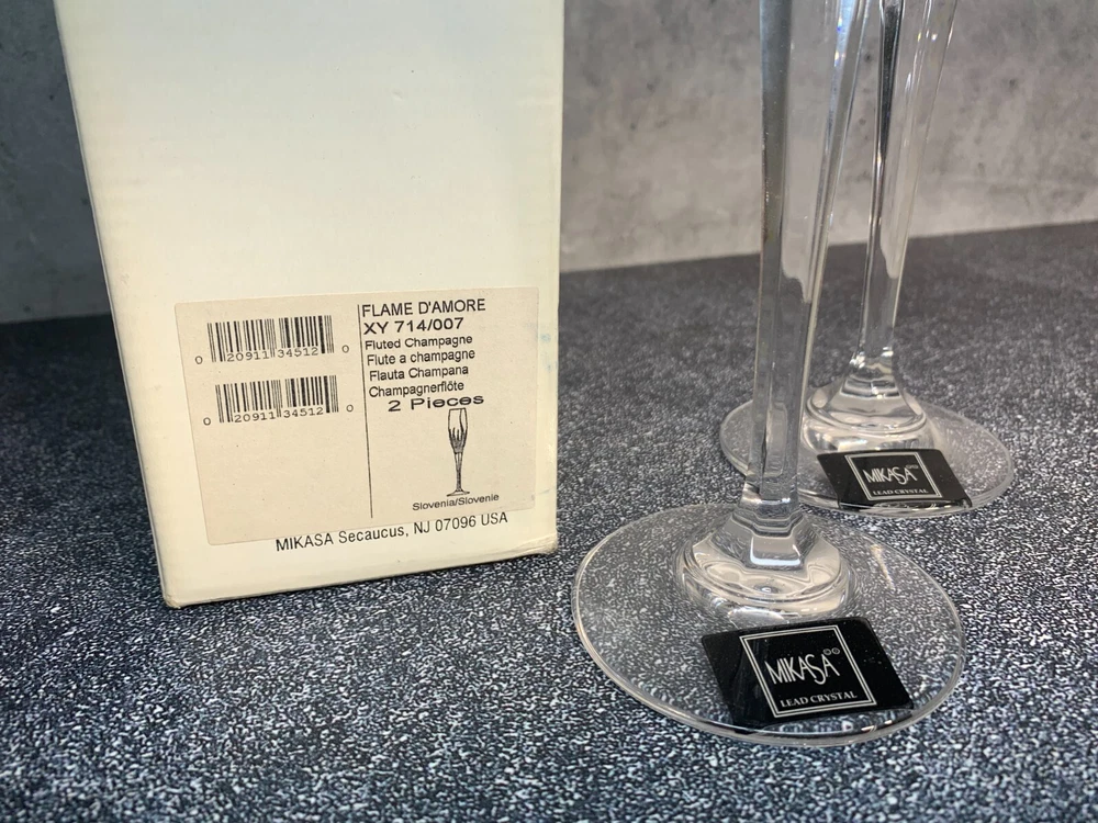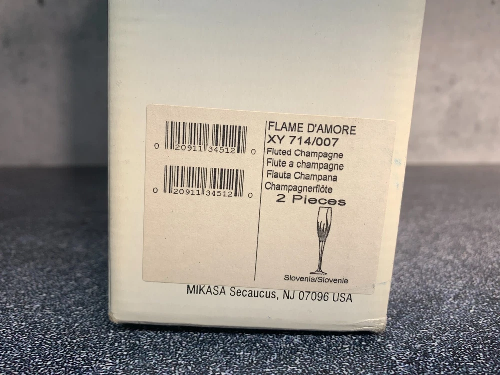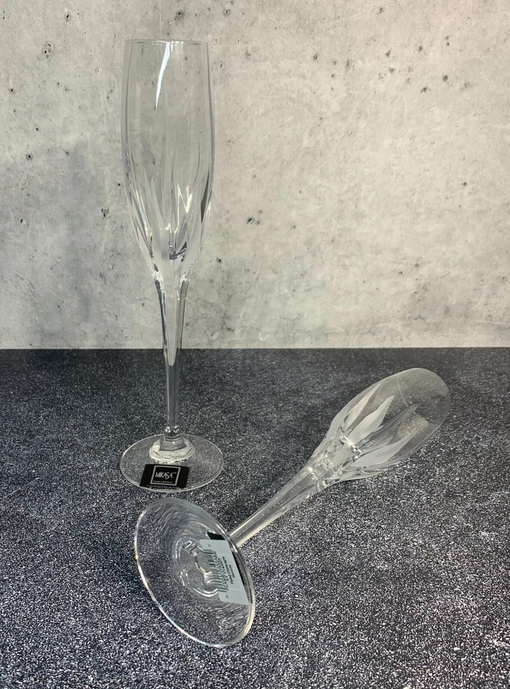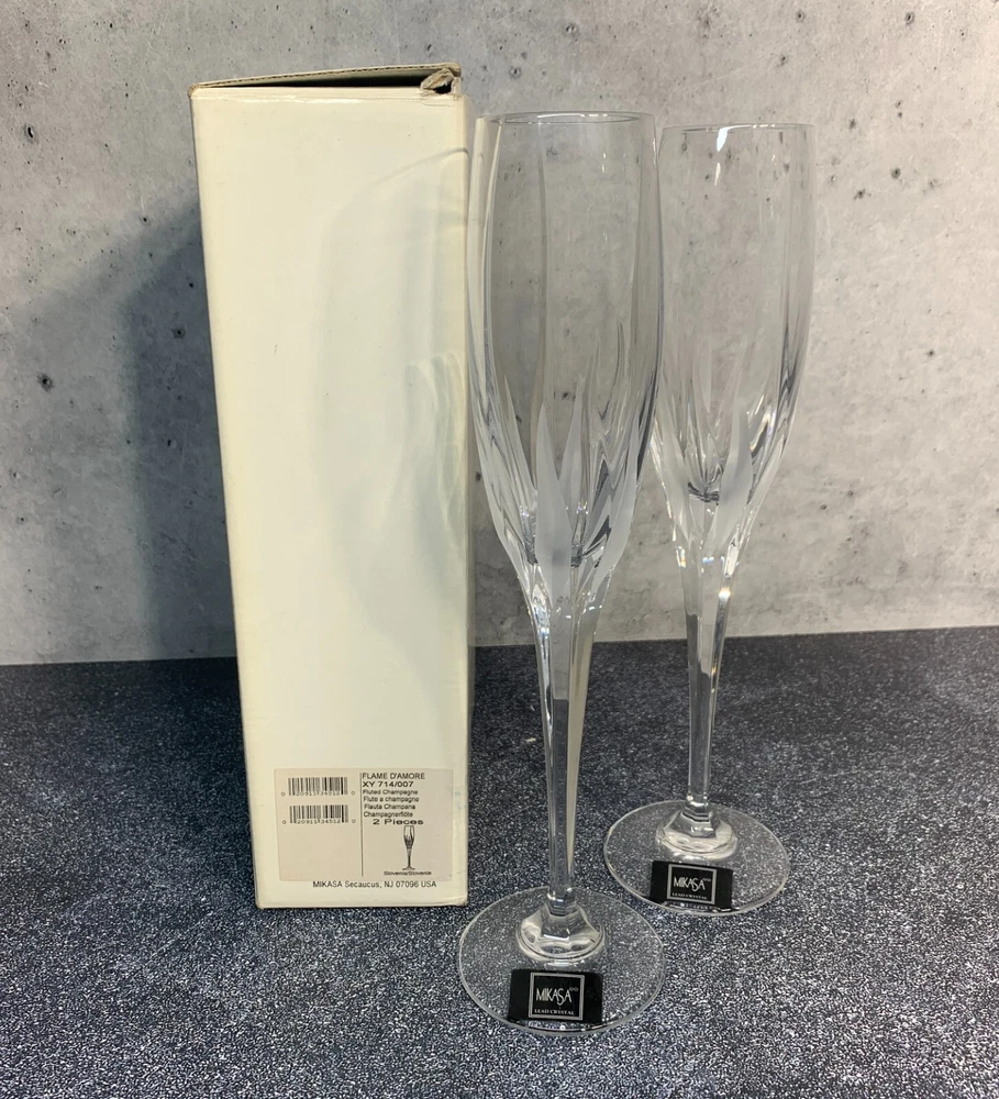 Mikasa Flame D’Amore - Set of 2 Elegant Crystal Champagne Flute Glasses ~10.75"