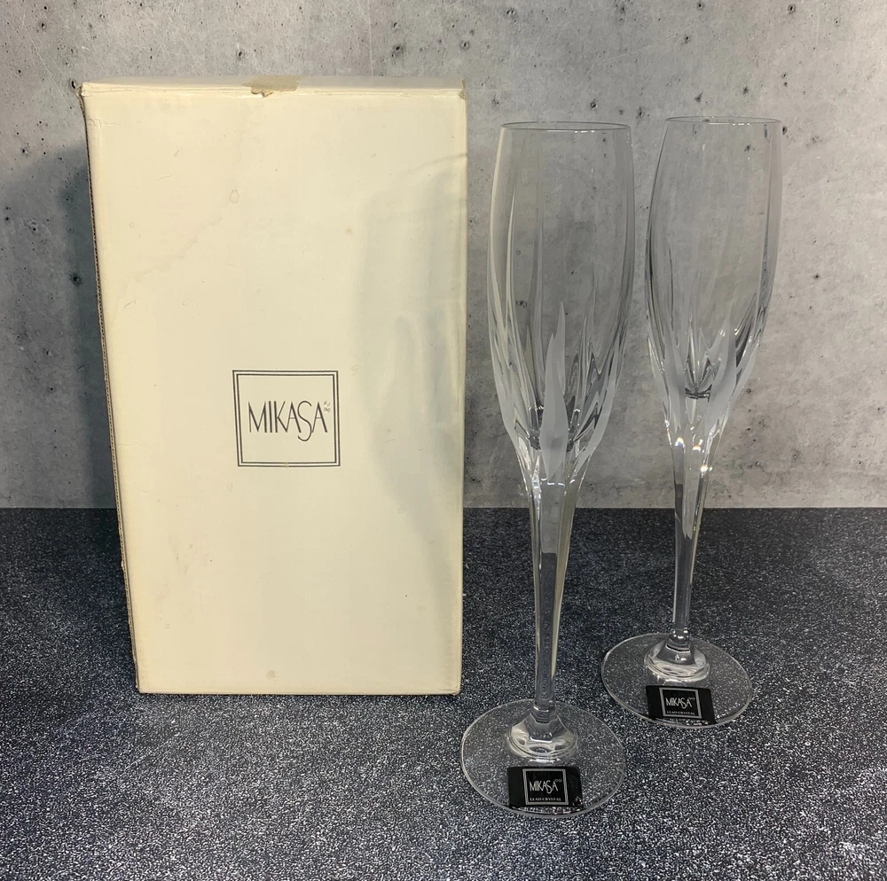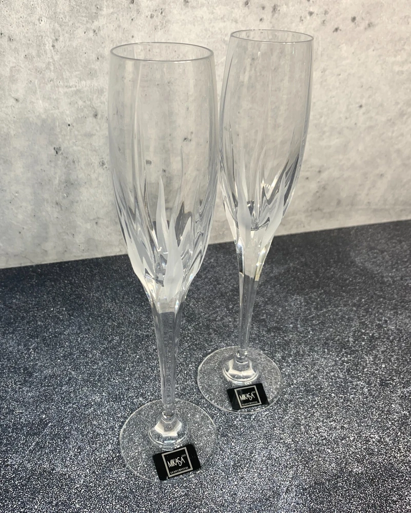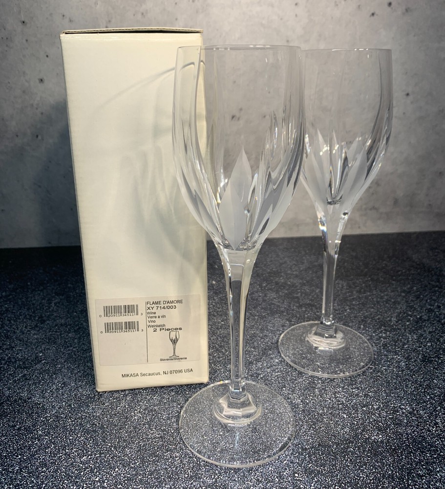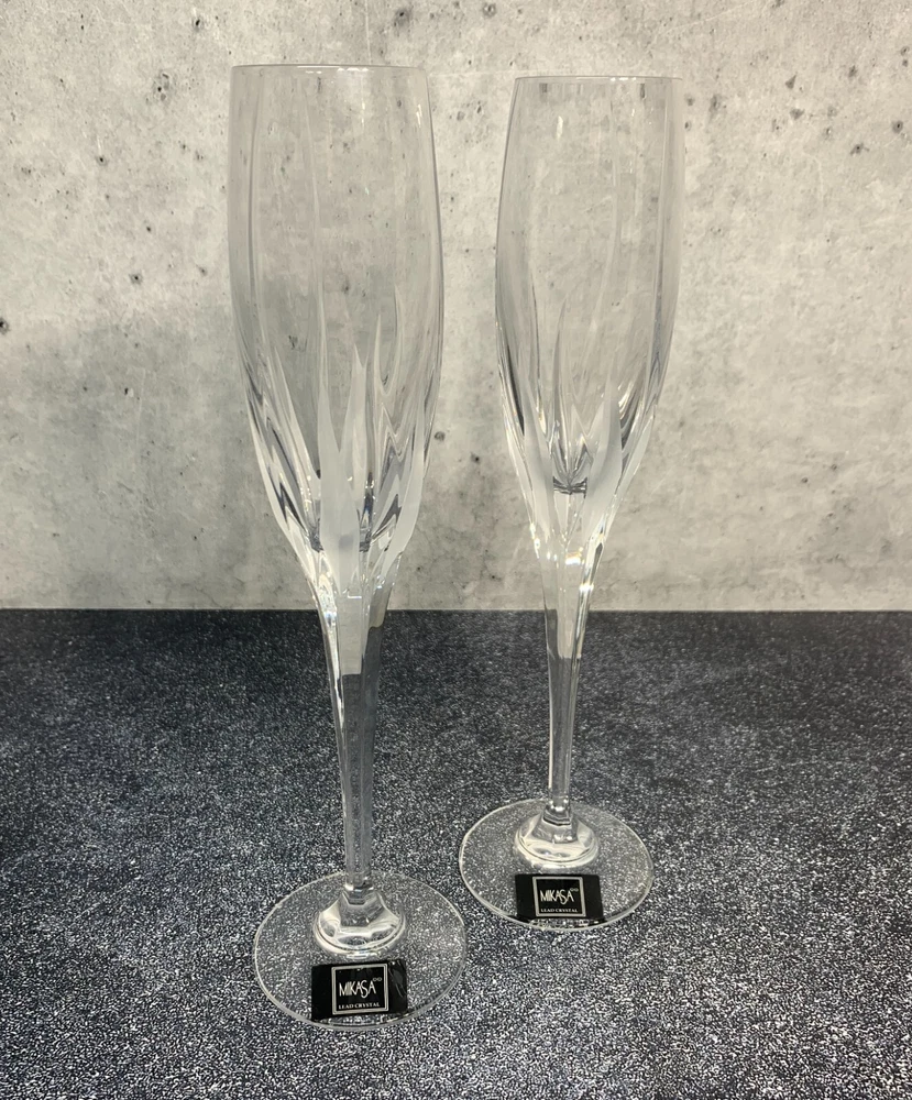 Mikasa Flame D’Amore - Set of 2 Elegant Crystal Champagne Flute Glasses ~10.75"