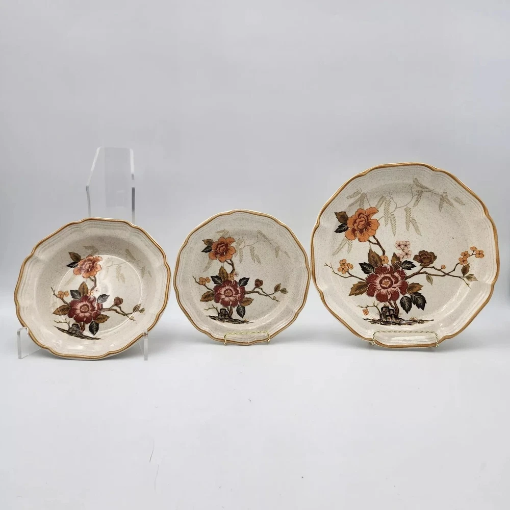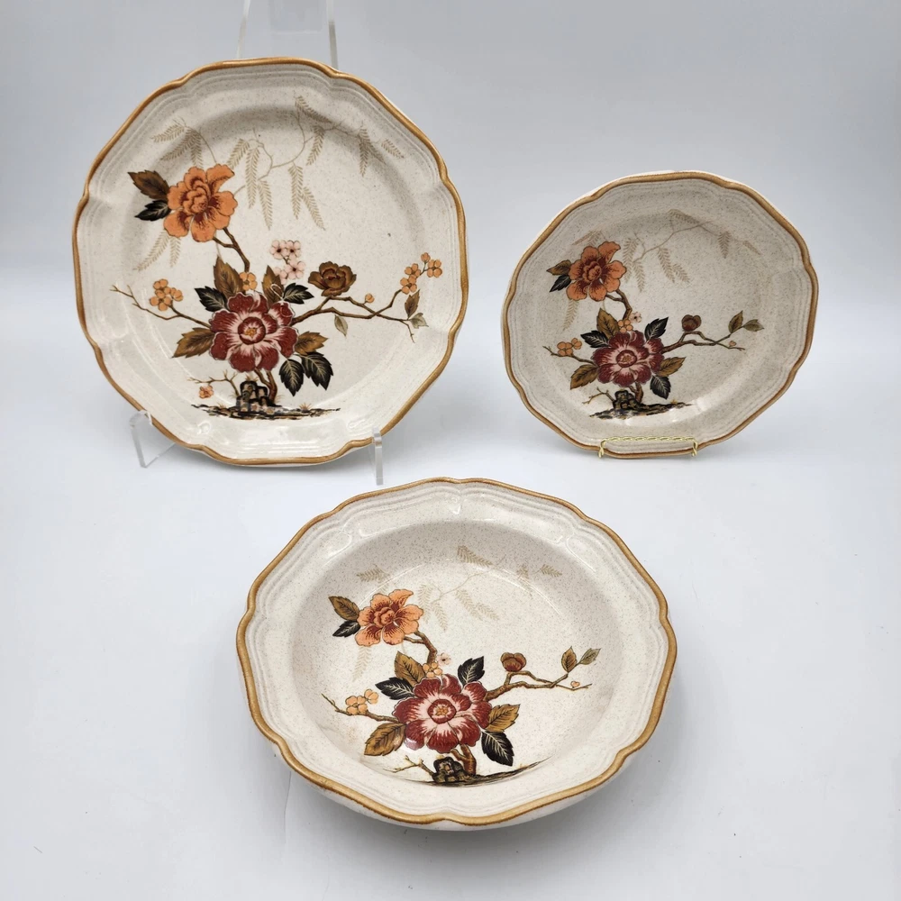 These classic Mikasa Imperrial Garden Club EC 459 Stoneware salad plates are the perfect table setting for a vintage mid-century decor. Made in Japan, each plate in the set of 7 measures 8" diameter. They are dishwasher and microwave safe. The color pallete is natural and, therefore, fits most color schemes.