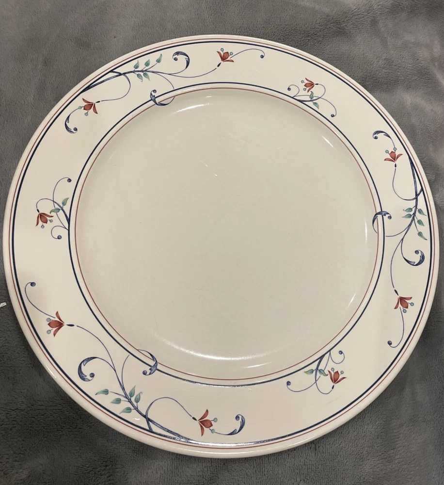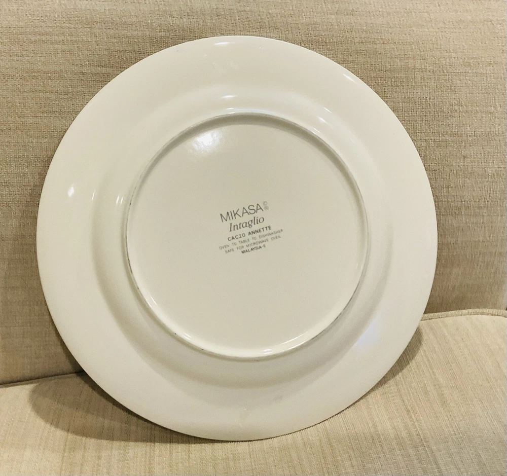 This elegant Mikasa Intaglio Annette dinner plate is 11”. It has some wear marks, so please see photos before purchasing. It is a lovely addition to your setting.