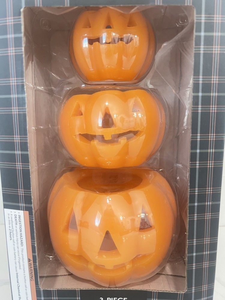The Mikasa Orange Pumpkin LED Candles are a set of 3 flameless candles in 3 different sizes. These candles are designed with LED lights for a safe and smoke-free option for adding ambiance to your home. The orange color and pumpkin scent make them perfect for creating a cozy and festive atmosphere during the fall season. Powered by batteries, these candles are easy to use and maintain, making them a convenient choice for any home decor. Will be shipped no later than following business day after purchase. Thank you for your time and consideration.
