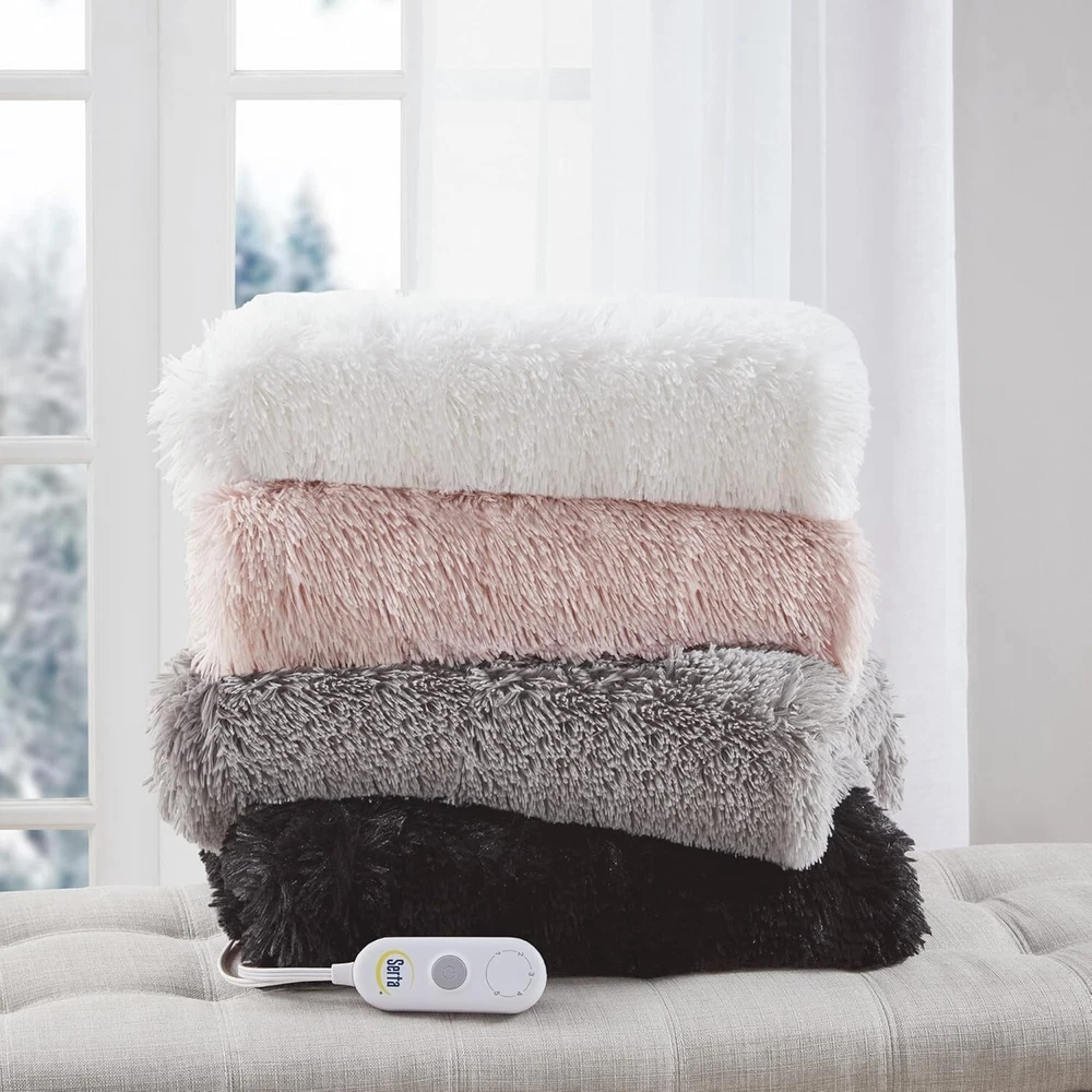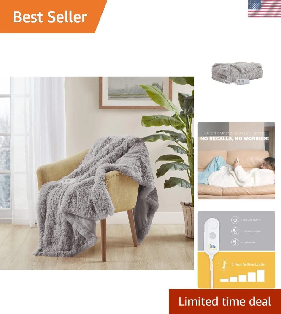 Mila Shaggy Heated Throw Blanket - Soft Faux Fur Heated Blanket, Fast Heating, Auto Shut Off Timer, Low EMF, 5 Heat Setting, ETL Certified, Machine Washable Electric Blanket, Ash Grey 50"x60" 100% Polyester Shaggy Faux Fur Ultra Soft and Luxurious - Get cozy during the cold season with heated shaggy throw featuring premium quality soft long faux fur cover for your personal comfort. Shaggy fabric will naturally shed in a within the first few washes Safe & Warm - Quick to heat up with evenly spaced heating wires creating even heat distribution for your comfort. electric throw blanket emits low EMF and ETL certified and independently tested to provide highest safety 5 Heat Settings & Auto-Shut Off Feature - Super soft and cozy shaggy heated throw blanket comes with 5 level heat setting controller and 3 hour auto shut off timer safety feature. Ensuring both energy efficiency and your safety 1 Heated Throw - 50"W x 60"L; power cord: 6ft; controller cord: 3ft. DO NOT LEAVE CONTROLLER COVERED WHEN IN USE TO AVOID OVERHEATING. Comes with 3 satisfaction Easy Care - electric throw is conveniently machine washable. Using a delicate cycle with cold water and mild laundry detergent. To reduce shedding, it is recommended to air dry. Please avoid placing it in the dryer to prevent any damage premium multi heat setting heated throw features cozy and super soft shaggy texture to keep you comfortable, ideal for cold winter season. Perfect size and the ambient heat of this electric blanket is suitable during the cold season keeping you warm like a personal heater. Beautiful blanket comes in many vibrant colors to choose from. For your safety, it features auto shut off timer. Conveniently machine washable and comes with 3 s .