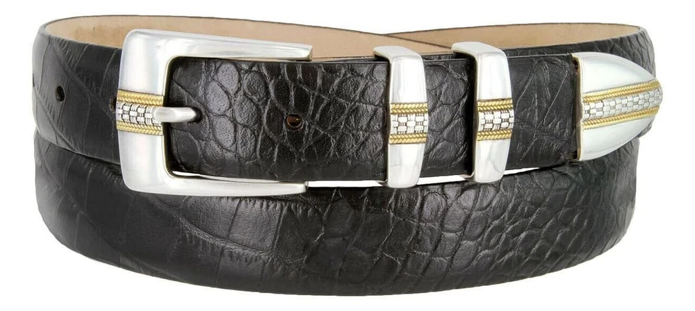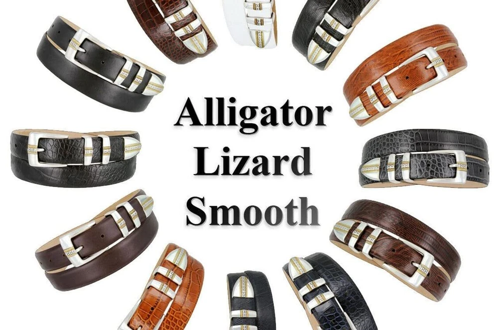 Description Made from High-quality Italian Calfskin genuine leather, Hand-polished silver plated four-piece buckle set belt, and 5 conchos belt. 1-1/8"(30mm) wide belt with 7 belt holes for adjustments to offer maximum comfort. A great designer dress belt perfect for work, business, sport, and outdoor. Detailed of Alligator, Lizard embossing, or smooth leather belt. ★★★ How to measure your Belt size ★★★: The best way is to measure around where you wear the belt and add 2 inches to the measurement. Our belts are measured from the fold where the buckle is attached to the middle hole. If you want to get the best size we recommend measuring a belt that works for you from the fold to the hole where you wear the belt. Made from High-quality Italian Calfskin genuine leather, Hand-polished silver gold plated four-piece buckle set belt. 1-1/8"(30mm) wide belt with 7 belt holes for adjustments to offer maximum comfort. A great designer dress belt perfect for work, business, sport, and outdoor. Detailed of Alligator, Lizard embossing, or smooth leather belt. ★★★ How to measure your Belt size ★★★: The best way is to measure around where you wear the belt and add 2 inches to the measurement. Our belts are measured from the fold where the buckle is attached to the middle hole. If you want to get the best size we recommend measuring a belt that works for you from the fold to the hole where you wear the belt.