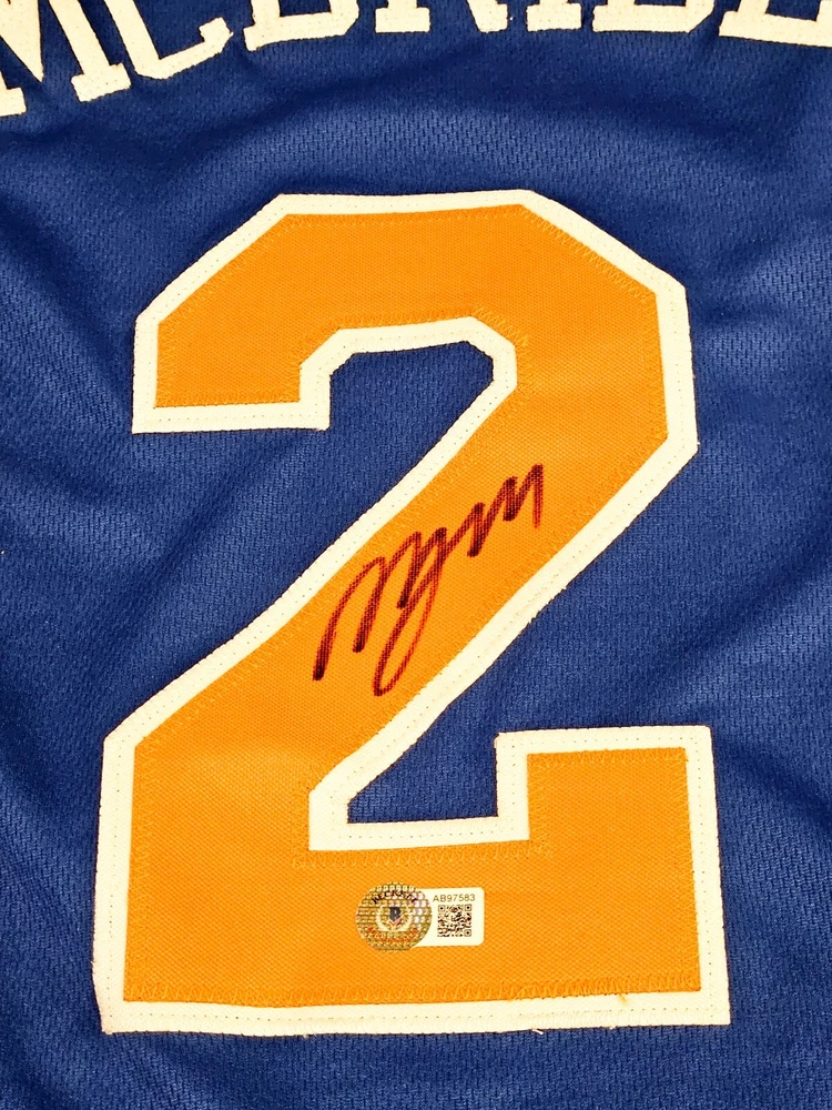 Miles McBride New York Knicks Autographed Custom Jersey. Beckett Certification. Size Adult XL Note All Items Have A Certification of Authenticity Sticker On Them. These Certification Stickers Will Be From Beckett, JSA, PSA , RSA or OKAUTHENTICS. Some Items Will Come With A Matching Letter of Authencity. While Others May Not. Please Refer To Images Taken To See If Your Item Comes With A Matching Letter Of Authenticity. $5 USPS Shipping Combined shipping on all items won within 3 days. Each additional jersey won will only be $3 extra shipping