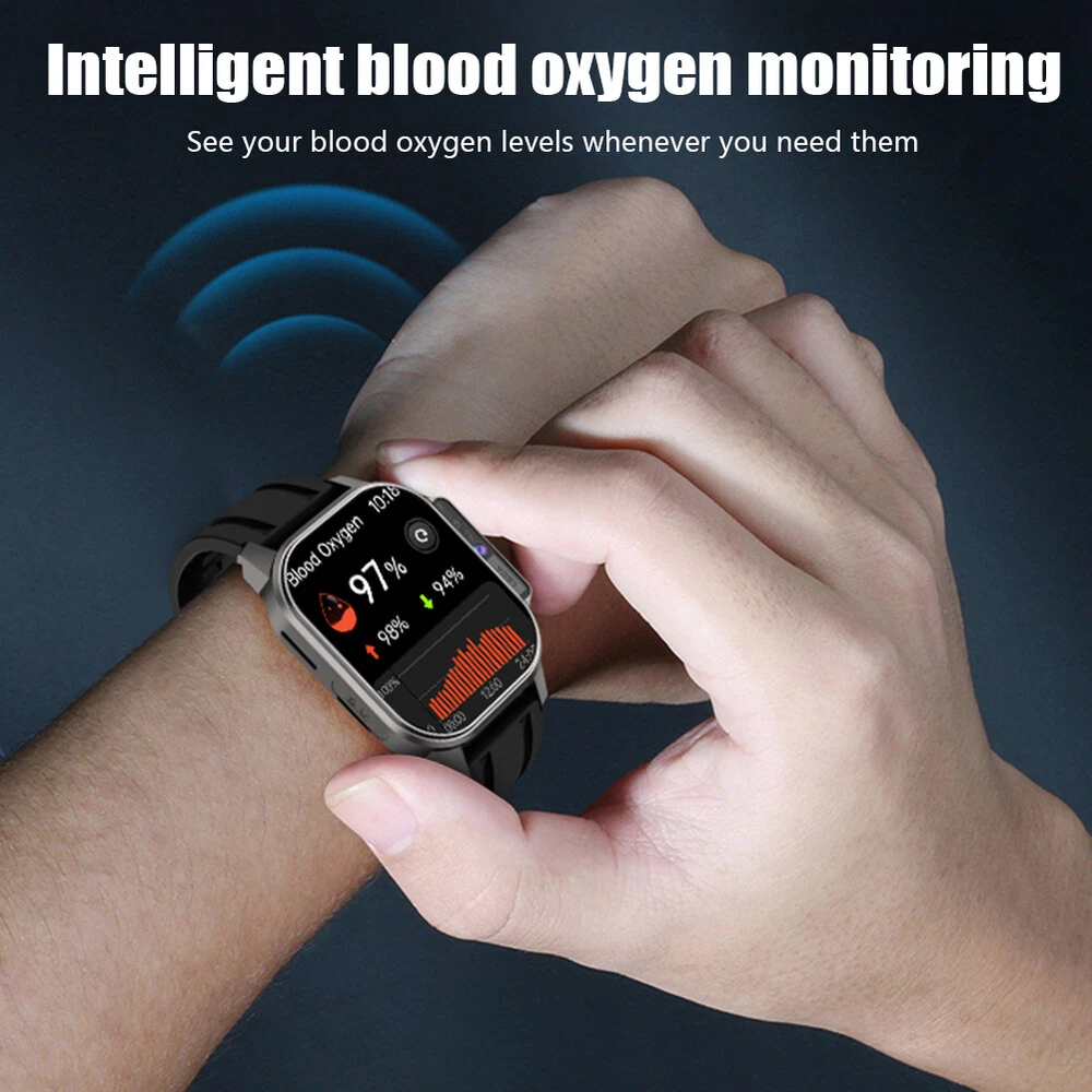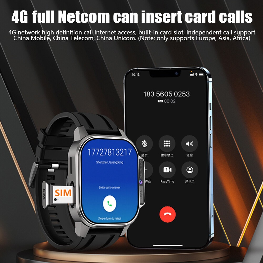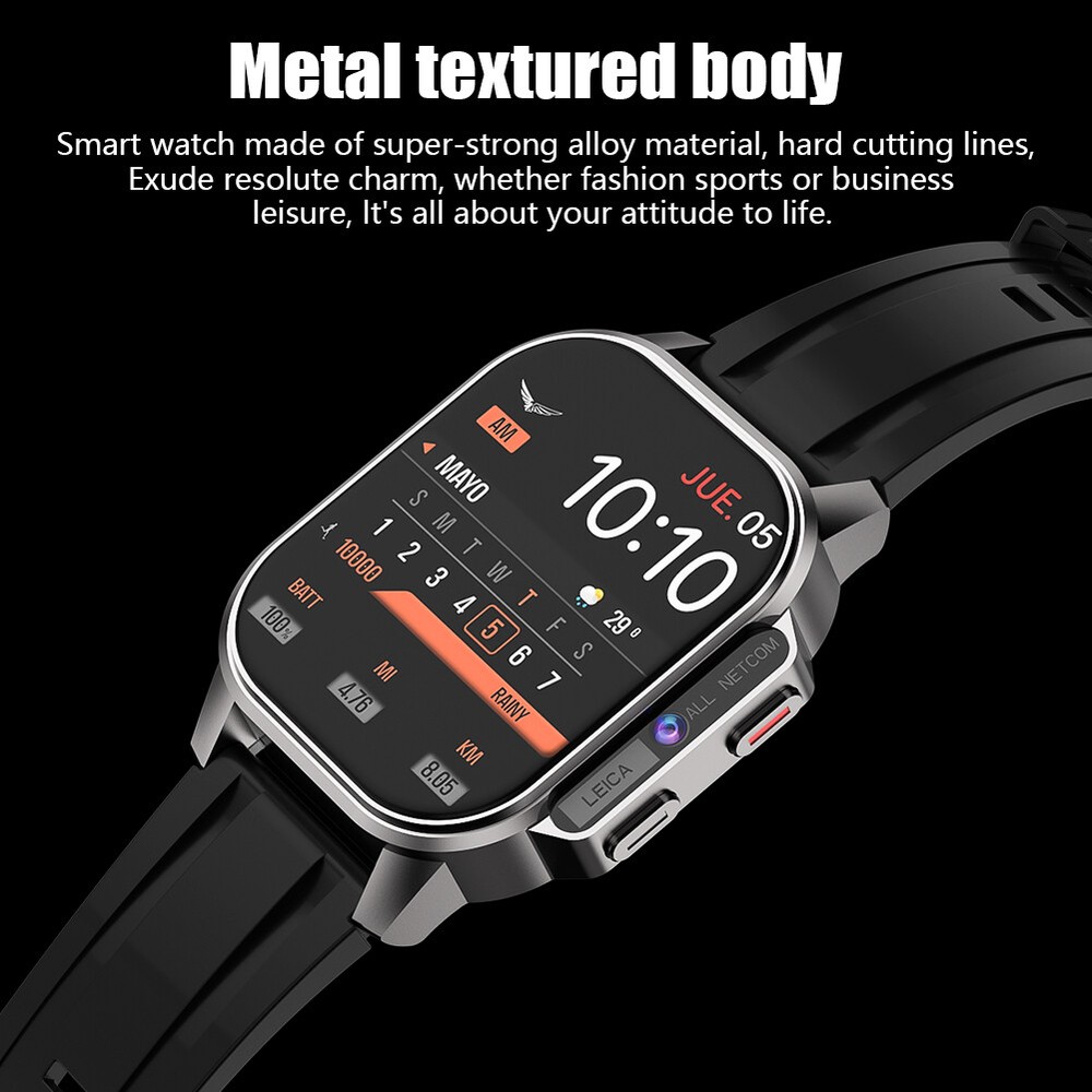 Product Description Military Smart Watch For Men/Women (Answer/Make Call) W/ Front Camera Waterproof Features: Front camera: supports high-definition video calls, high-definition selfies, clear picture quality, wide field of view 4G full network: card insertion for high-definition calling, 4G network for high-definition calling and internet access, built-in card slot, independent calling (Note: only supports Europe, Asia, Africa regions) Free download apps: Almost all of them here have a complete app market, where various apps can be downloaded freely and immediately enjoy a smarter and more cutting-edge experience Intelligent blood oxygen monitoring: always concerned about your health, you can see your own blood oxygen level at any time when you need it Specifications: Strap Material: Silicone Strap Camera: 200W front camera Battery life: 3-7 days Charging method: magnetic attraction Capacity: 2+32GB Waterproof grade: IPX68 Package included: 1 * Watch 1 * Charging compartment 1 * Charging cable 1 * Instruction manual