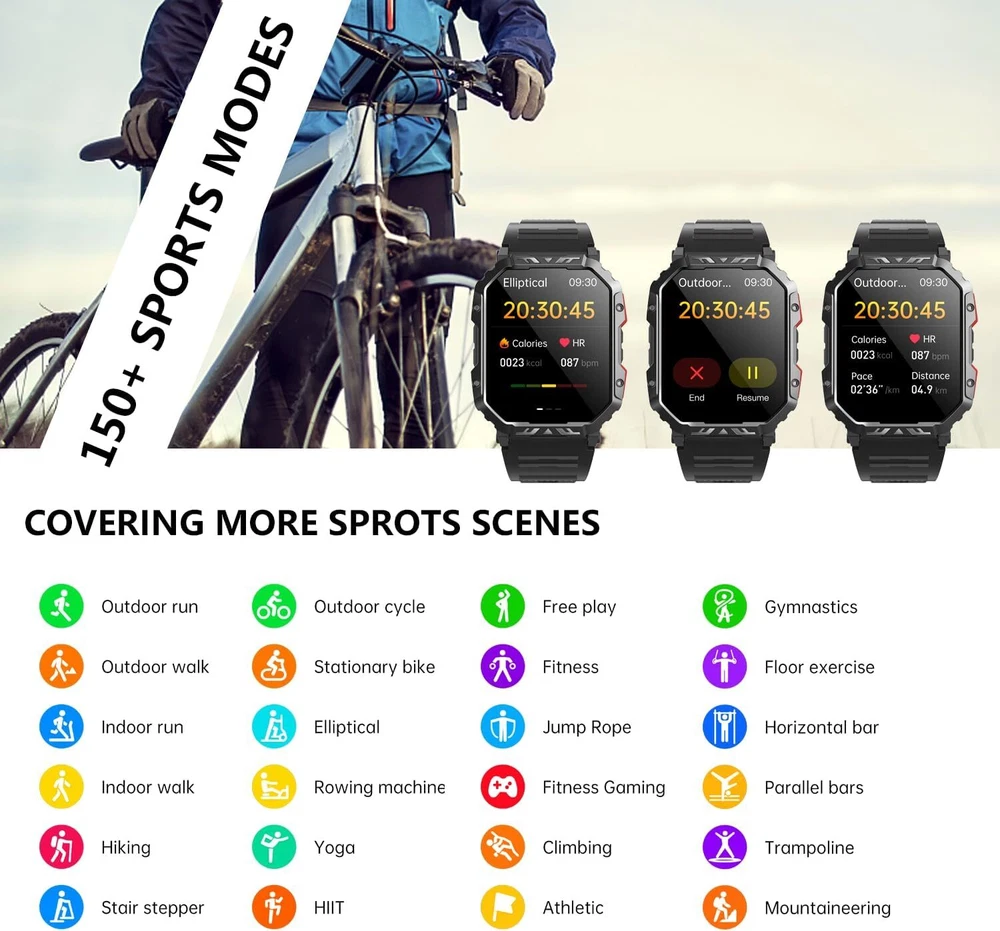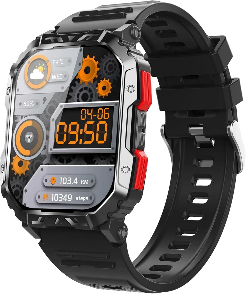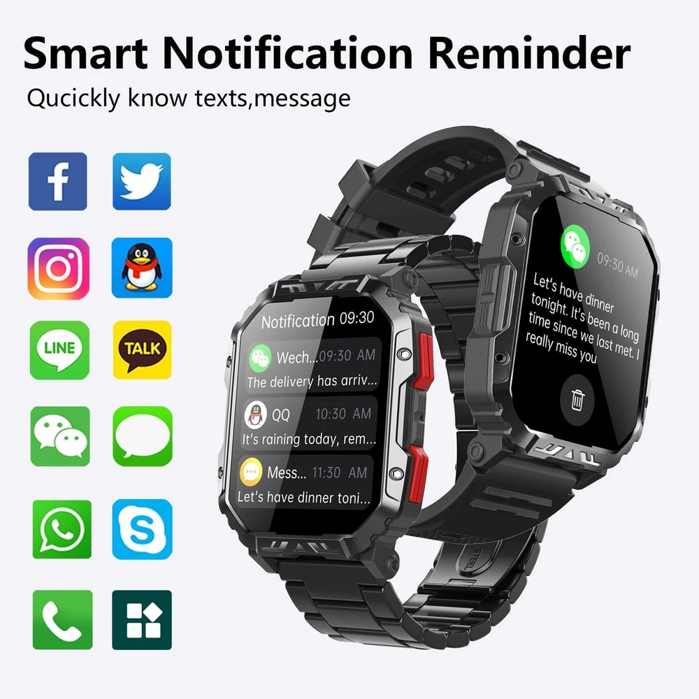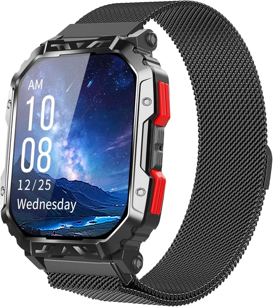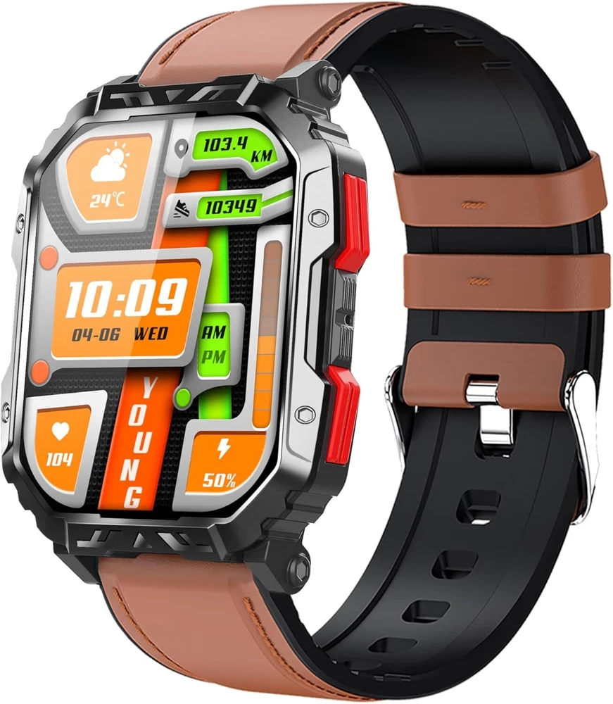 Rugged Military Smart Watch for Men Engineered with a bold 2.1" full-touch square display and durable zinc alloy frame, this tactical smartwatch is built to endure extreme environments while offering advanced fitness and health tracking features. Key Features: 24/7 Health Monitoring : Tracks heart rate, SpO2 (red light), HRV, stress, sleep, body temperature, and more in real time. 151 Sport Modes : Covers outdoor, indoor, dance, combat, and winter sports—ideal for any lifestyle. Voice Assistant + Tools : Includes voice control, music playback, calculator, weather, flashlight, mini games, stopwatch, and camera control. Multilingual & Compatible : Supports 24 languages and smart notifications on Android 5.0+, iOS 10+, and HarmonyOS (one-click Bluetooth sync for iOS 13+). Custom Watch Faces : Choose from 6 built-in faces, online markets, or upload your own style. IP68 Waterproof + Long Battery : Water-resistant and up to 12 days of battery on a single charge; magnetic charging included. Package Includes: 1 x Smart Watch 1 x Magnetic Charging Cable 1 x User Manual Download the Joeme Fit app to unlock full functionality and customization.