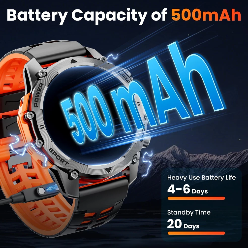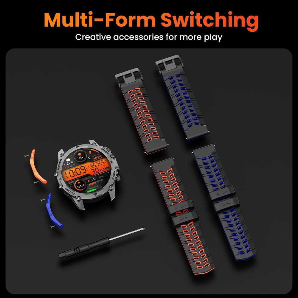 Engineered for men who demand resilience, this military smart watch combines tactical durability with cutting-edge tech. The smart watches for men feature a 500mAh ultra-long battery and a forged titanium case—ideal for outdoor missions or urban challenges. Switch styles effortlessly with dual quick-swap strap kits (Black/Orange for high-visibility trails; Black/Navy for stealthy professionalism). As a smart watch compatible with iPhone and Android smart watch, it tracks heart rate, blood oxygen, and sleep, or stay connected with call/text alerts. Built for versatility, this smart watch for Android phones and iOS users adapts to gym sessions, boardrooms, or mountain summits. For tech-driven adventurer, it’s the hybrid of military smart watches for men and modern wearables. 🏆【3-Proof Military Smart Watch,Tough Guy Style Built to the Wild】This rugged military smart watch is designed with a rugged titanium bezel and stainless steel back, the smart watches for men case is meticulously polished and stitched with fine metal craftsmanship,showed the sense of power. The military outdoor smart watch passes strict military-grade tests ,that is wear-resistant, shock-resistant, water-resistant and sand-resistant and builts to withstand the wild. 🏆【Two-Color Impact: Two sets of Accessories and Straps for One Smart Watch】The mens smart watch's quick-release side decorative clasp and strap are available in bright orange/black and navy blue/black - both of which are highly impactful colors. The combination of bright orange/black, inspired by the tactical gear alert color scheme, conveys energy and adventure from the strap and decorative buckle. Perfect for urban business or the gym, the navy blue/black combination is understated and professional. 🏆【Sports and Fitness Tracker Watch】This military smart watches for men has 100+ indoor and outdoor sports modes, customized for people who love sports. When connected to the APP, the fitness tracker can track steps, distance, calories and more. You can also view the exercise track, set exercise goals and view exercise records through APP to help you achieve your fitness goals. 🏆【Advanced Health Monitoring】 The watches for men monitors heart rate, blood oxygen and sleep in real time with high-precision sensors. You can turn on all-day heart rate monitoring in the APP, and monitor your sleep patterns, such as deep sleep, light sleep and REM, and provides sleep trends for the last seven days. Stay informed about your health and make better decisions for your well-being. 🏆【500mAh Large Capacity Battery and Other Multifunctions】The smart watches for men has a built-in 500mAh high-capacity battery, which can be charged for 2 hours and supports 5-10 days of daily use and 45 days of standby. It is a multifunctional smart watch compatible with iphone and android phones, with many functions such as weather forecast, music playback and control, camera control, find cell phone, calculator, alarm clock, sedentary reminder, drinking water reminder, stopwatch, timer and so on, it is an assistant in your daily life. 🏆【Wrist Communication & Smart Voice AI】Stay connected to the phone to make/answer calls on smart watch and receive SMS and APP messages (Facebook, WhatsApp, Twitter, etc.)This smart watch for android phones is a life voice assistant, controlling yourmens smart watch is as simple as a command. Set reminders, control smart devices and much more, all with your fitness tracker. 🏆【Responsible Attitude】If there is any problem with the product, please feel free to contact the seller's customer service. Even for products that have been ordered for more than 30 days, you can contact the seller's customer service in case of problems.