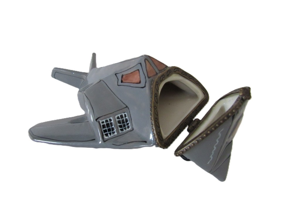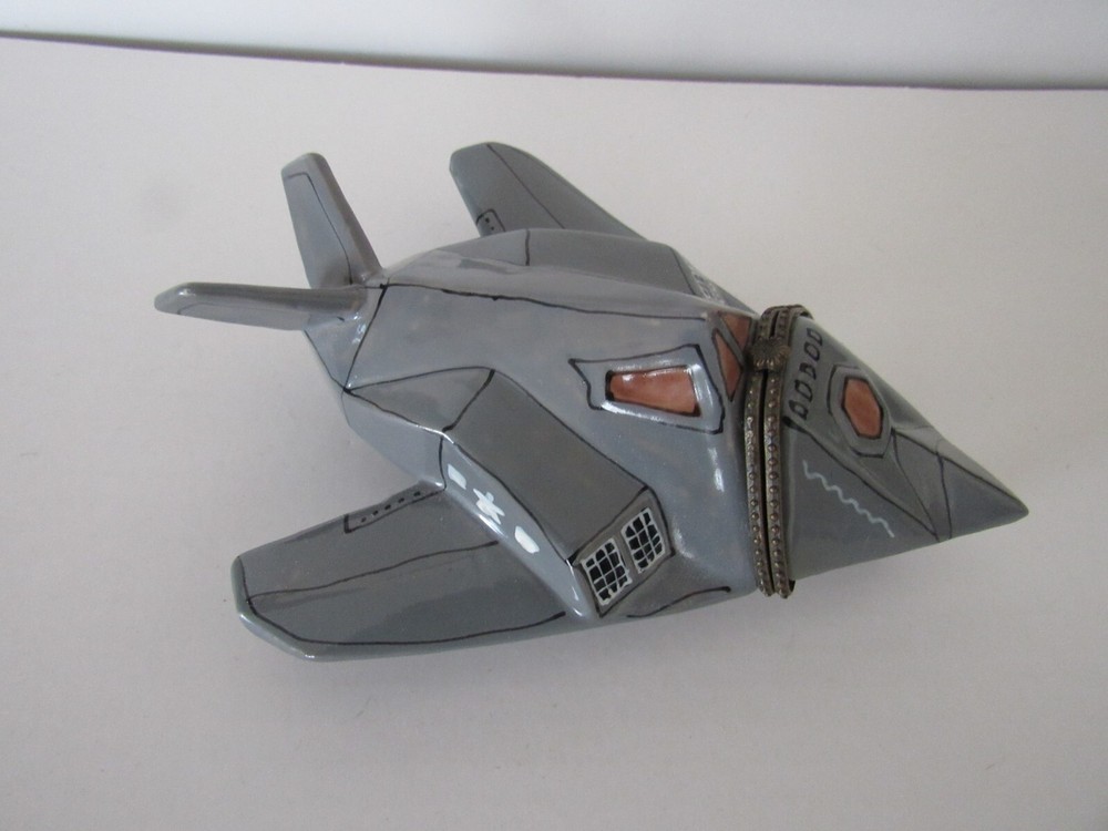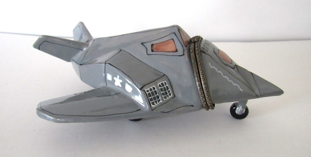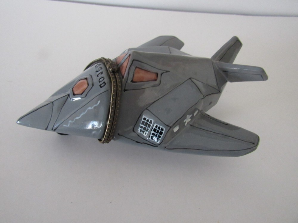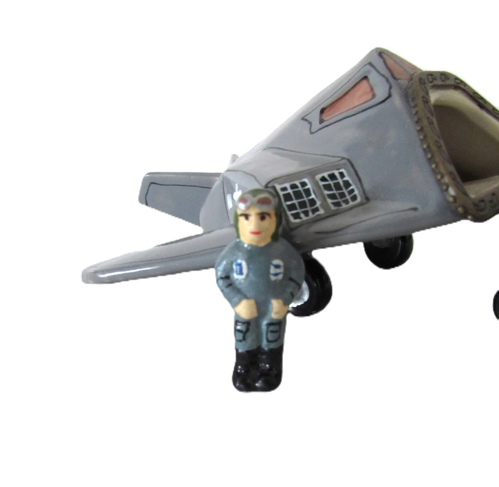Military Stealth Fighter Plane Ceramic Hinged Trinket Box with Pilot Vintage Snap closure 6 inches long x 4.5 wide x 2 tall Please browse our store for more great items. We will gladly combine shipping.
