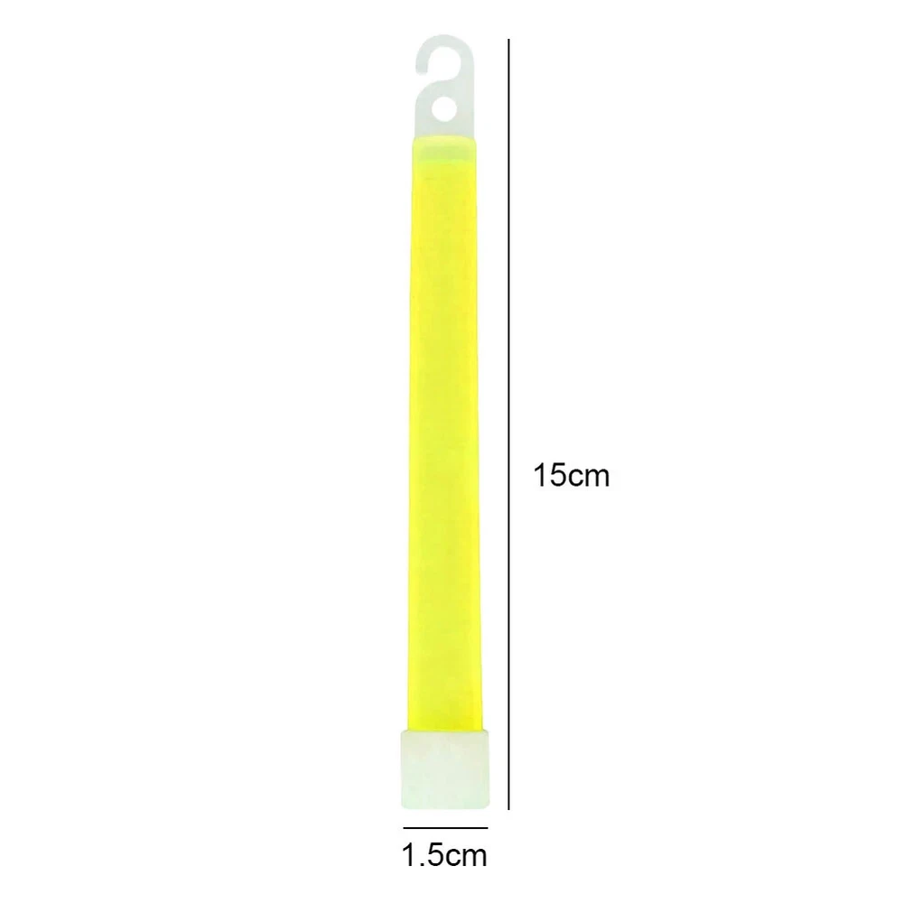 6 inch Fluorescence Light Glow Sticks with Hook for Hiking Camping Outdoor Emergency Concert Party Light Stick Feature: Outdoor signal: Walk with your teammates in the jungle at night, and the light sticks in the black paint can easily help you determine the location of the people around you; Fluorescent lighting: In a dark environment, a fluorescent stick can help you understand the surrounding environment well, even reading. Outdoor camping: There are many adventures in the outdoors, you are lost in the long dark night, or you cannot move forward due to various situations and wait for rescue. Maybe a small light stick can help teammates and rescuers find your location Perfect for emergencies, power outages, survival kits, camping and parties - these green glow sticks have many different uses, making them a must-have. You'll be surprised how useful they are when you need them. You can also take them on a fishing/hunting/boating trip, or give them as a gift to your kids for a party. Super bright and long- These glow sticks can be seen from a mile away and provide the light output you need when you need it most. The best thing is that they last at least 12 hours. Long life - Manufactured to strict quality guidelines, these glow sticks will last for years to come. This is a maintenance free setup. Don't settle for anything less. Safe to use and storage: These glow sticks are waterproof, non-toxic and non-flammable. They're also individually wrapped in sturdy foil, so you can carry them piece by piece without worrying about them breaking or tearing. Specification: Size: 15cm length * 1.5cm diameter/5.91*0.59'' Color: Yellow light Note: Due to the different monitor and light effect, the actual color of the item might be slightly different from the color showed on the pictures. Thank you! Please allow 1-2cm measuring deviation due to manual measurement. 1/5 x Glow Stick