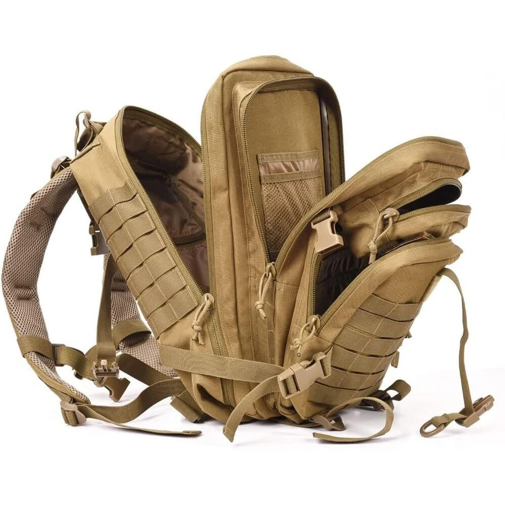Description Desc.: Military Tactical Assault Pack Backpack Small Army Bag Backpacks Rucksack for Outdoor Hiking Camping Hunting The molle tactical backpack has molle system, But MOLLE is a little different as most tactical bacpkacks and is not to spec. Spacing between of molle is less than 1/2" Tactical assualt backpack size approx.:11"*18"*12" / 28*45.5*30CM (W*H*D),Capacity: 34L, it's not big backpack; Military backpack is made of 600x600 Density fabric, durable and water-resistant The assault pack with double-stitched, Heavy duty zippers and utility-style cord pulls, Side and front load compression system, Comfortable padding back area, Ventilated mesh padding shoulder strap. Military backpack has hydration compatible that works great for a 2.5L hydration bladder Notice: backpack didn't include hydration bladder This tactical assault pack backpack can be used as 3 day assault pack backpack, combat backpack, range bag, hunting backpack, survival backpack, rucksack military army backpack or trekking backpack. Tactical assualt backpack Capacity: 34L. Size approx.:11"*18"*12" / 28*45.5*30CM (W*H*D), it's small backpack; Military backpack is made of high density fabric-durable and water-resistant. The assault pack with double-stitched, Heavy duty zippers and utility-style cord pulls, Side and front load compression system, Comfortable padding back area, Ventilated mesh padding shoulder strap. Military backpack has hydration compatible that works great for 2.5L hydration bladder (backpack didn't include hydration bladder) as hydration back pack or outdoor camping hiking backpack backpack. This tactical assault backpack can be used as 3 day assault back pack backpack, combat backpack, range bag, hunting backpack, survival backpack, military army backpack rucksack or trekking backpack. The molle tactical backpack has molle system, MOLLE is a little different as most tactical bacpkacks and is not to spec. Spacing between of molle is less than 1/2".