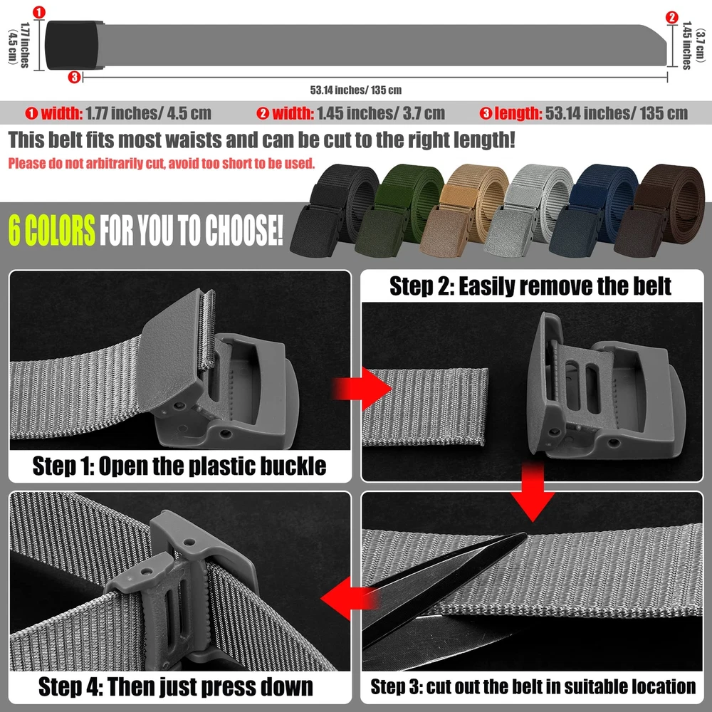 Premium nylon webbing, lightweight, soft, flexible, sturdy and durable, sweat absorption and dry fast. NON-Metal: Travel-friendly Non-Metal construction. Allow you to be able to go through a metal detector or airport security without having to take it off. Especially suitable for metal allergy to wear. Adjustable: Holeless belt and removable buckles that it's easy to trim it to size. Belt size: length 53 inch, width 1.5 inch. You can trim the strap length to a smaller size you want, and seal it by a lighter. Molle external expansion system designed to be used in combination with other equipment, you can load pockets, water bottle bag, accessory kits and other. Choose choose a better lifestyle. Your satisfaction is our ultimate goal, please do not hesitate to contact us if any question.