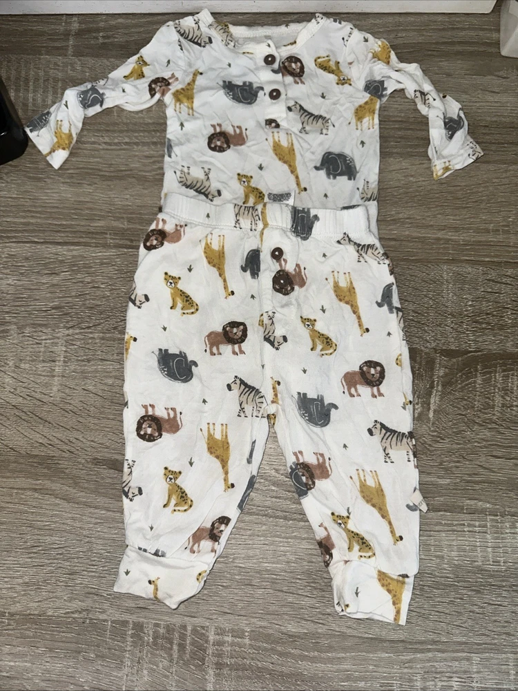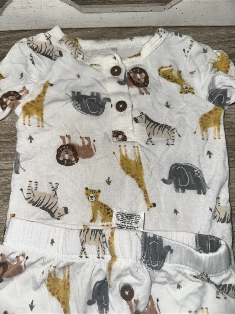 Milk Berry 2 Pc Safari Animal Bamboo Outfit Size 0 To 3 Months