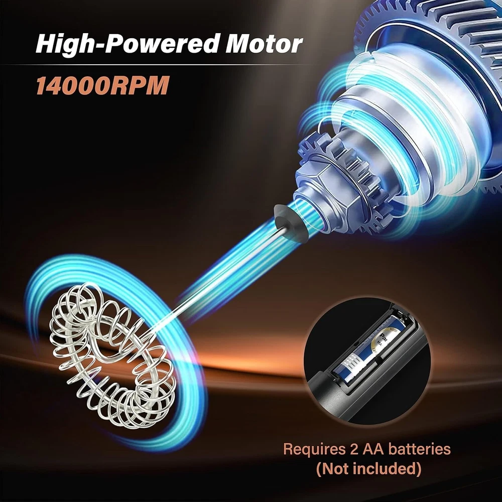 WeluvFit specializes in premium milk frothers, empowering you to become your own barista or share the gift of excellent coffee with friends and loved ones. The WeluvFit Universal Stainless Steel Stirrer offers hassle-free usage tips: Place the milk frother into a container with drinks, filling up to approximately one-third to begin frothing. Activate the ON/OFF switch to set the whisk in motion, creating foam. Gradually lift the appliance as froth forms, keeping it within the froth layer. Stop the whisk by pressing the switch once the milk reaches the desired frothiness. Always press the ON/OFF switch before removing the whisk from the milk to prevent spills. For hot milk froth, ensure the milk temperature doesn't exceed 60℃/140℉ for optimal frothing. Features of our milk frother: Effortlessly creates creamy foam in 15-20 seconds with a single touch, eliminating the need to hold the button down. Constructed from durable, rust-resistant stainless steel, with a quiet yet powerful motor for minimal noise. Portable size for convenient travel, allowing you to relish your morning coffee on the go. Easy maintenance and usage: Simple cleaning by immersing the handheld Electric Stirrer in water and spinning it clean (note: the body isn't waterproof). Instant operation by placing it in a container with liquid. Stable and balanced operation without any wobbling. Convenience of battery operation: Powered by two AA batteries (not included), freeing you from cords and sockets, perfect for travel, home, and office use. Versatile applications for an enhanced lifestyle: Enjoy various coffee drinks like lattes, cappuccinos, hot chocolate, macchiatos, or mochas effortlessly. Ideal as a gift for friends or family, letting them relish the joy of creating delightful coffee beverages at home.