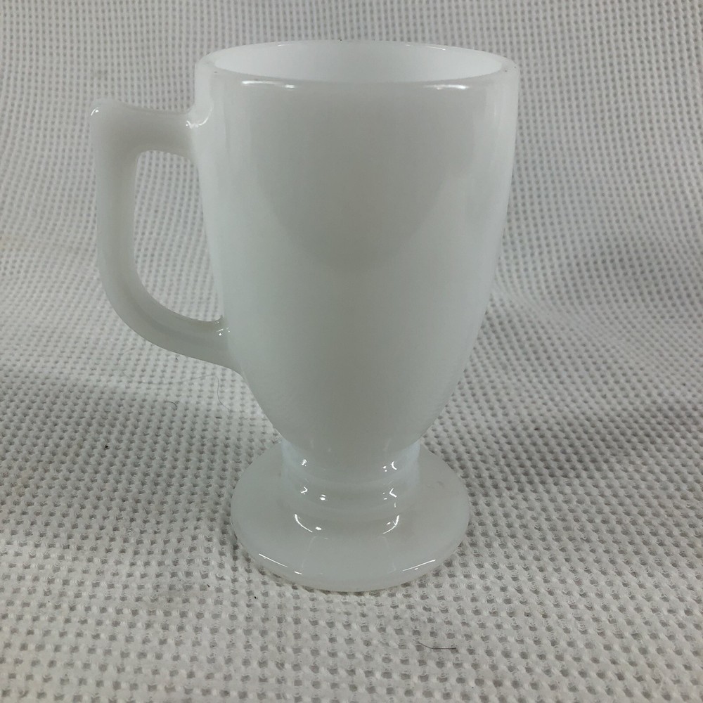 Milk Glass Pedestal Footed Cup Mug Hot Cocoa Irish Coffee White Handle. Condition is Used. Shipped with USPS Ground Advantage.