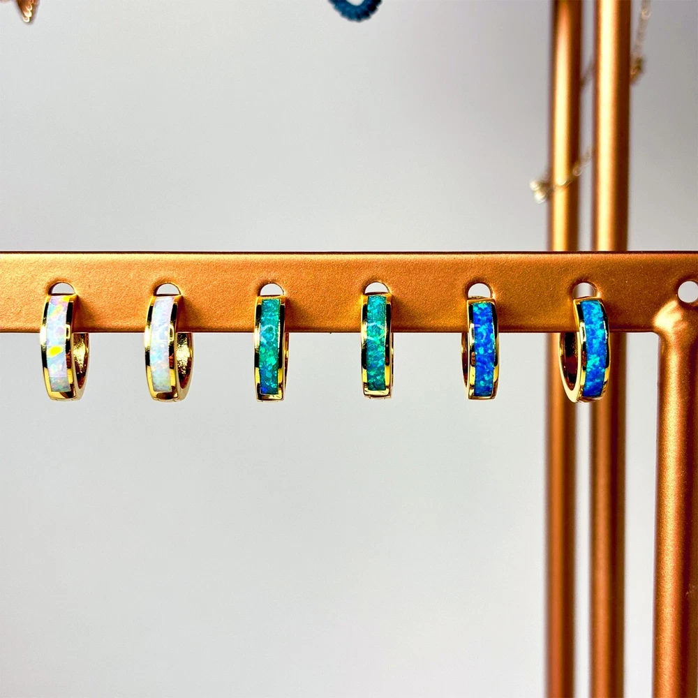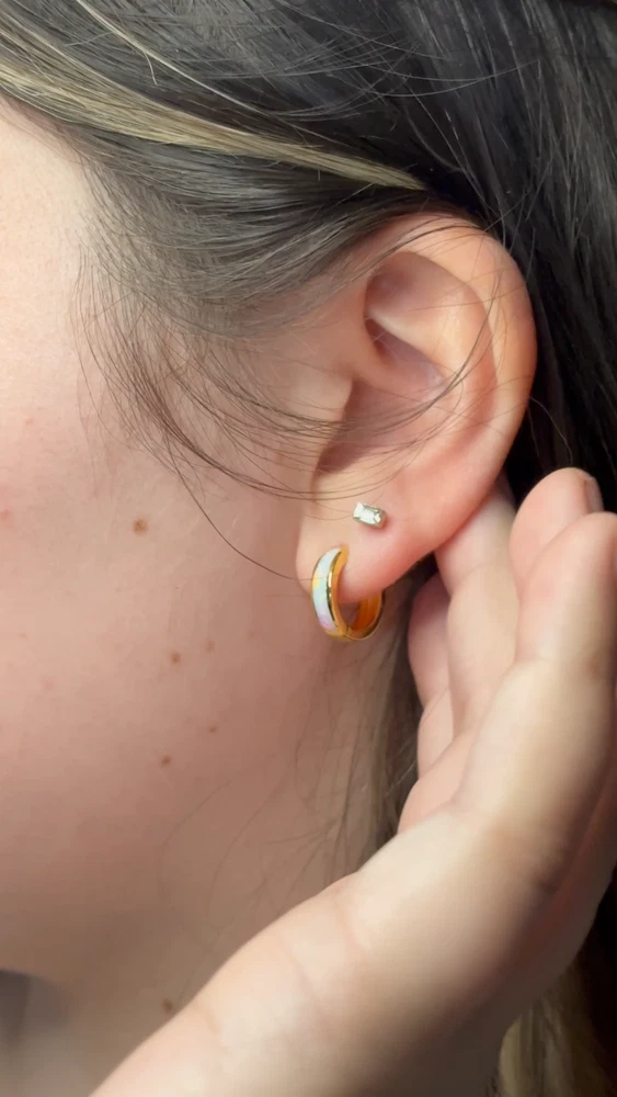 Milky White Opal Hoop Earrings – Dainty Huggies in Sterling Silver & 18k Gold Plated Elevate your jewelry collection with these Milky White Opal Hoop Earrings, available in sterling silver or 18k gold-plated finish. Featuring a radiant white opal inlay, these dainty huggies add timeless elegance to any outfit, whether worn daily or for special occasions. FREE & FAST SHIPPING Features Material Options: Choose from: Sterling Silver: Classic and durable. 18k Gold Plated: Luxurious and radiant. Opal Inlay: Milky white opal shines with an iridescent glow, catching the light beautifully. Design: Smooth, polished huggie hoop style for a snug and stylish fit. Size: Inner Diameter: ~6.5mm. Outer Diameter: ~11mm. Why Milky White Opal? White opal is celebrated for its soft, ethereal beauty and symbolic connection to hope and purity. Its luminous hues make it a versatile gemstone, pairing seamlessly with any outfit. Gemstone Options This listing highlights Milky White Opal, but other beautiful colors are available: Deep Blue Opal: A striking, oceanic hue for bold elegance. Garden Green Opal: A fresh and vibrant shade symbolizing growth and renewal. Perfect for Gifting These Milky White Opal Hoop Earrings make a thoughtful gift for: October Birthdays: Celebrate with opal, the traditional October birthstone. Holidays: Delight someone special with timeless opal jewelry. Anniversaries: A unique and meaningful keepsake. Why You’ll Love Them Versatile Style: Effortlessly chic for everyday wear or elegant occasions. Comfortable Fit: Lightweight design ensures all-day wear without discomfort. Timeless Elegance: The radiant white opal pairs beautifully with sterling silver or gold for a classic yet modern look. Care Instructions: To keep your opal huggies looking their best: Avoid exposure to water, perfumes, or harsh chemicals. Store in a dry jewelry box or pouch when not in use. Please Note: Each pair is crafted with care, and opal hues may vary slightly, making your earrings truly one-of-a-kind. Fast & Reliable Shipping: All items are beautifully packaged in reusable and recyclable jewelry boxes, ready for gifting. Add a touch of elegance to your jewelry collection with these Milky White Opal Hoop Earrings, available in sterling silver or 18k gold. Perfect as a personal treat or a meaningful gift, these dainty huggies are designed for everyday sophistication. Order now with FAST & FREE shipping!