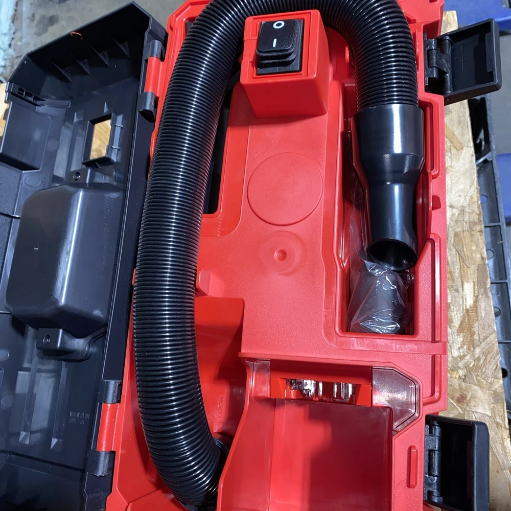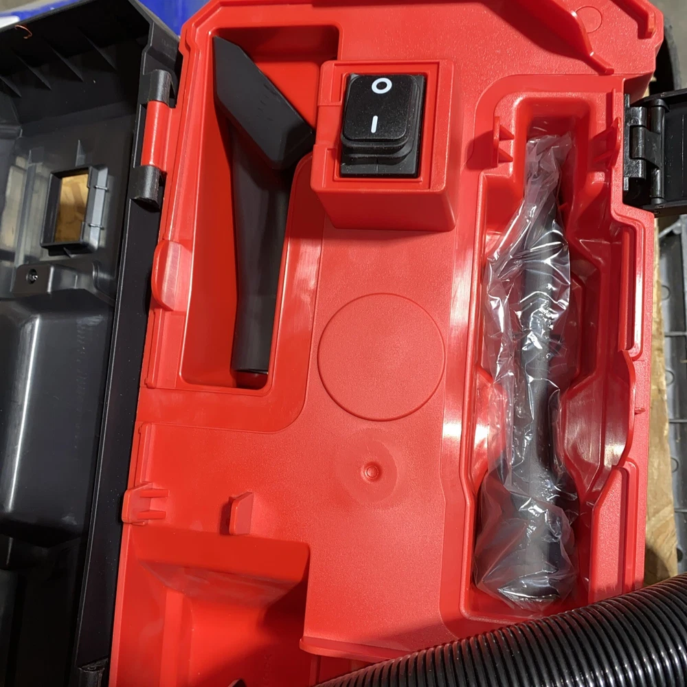 This Milwaukee 0880-20 M18 18V Wet/Dry Vacuum is a powerful and versatile tool that can tackle both wet and dry messes with ease. It comes with a crevice tool accessory and has a blower feature for efficient cleaning. The vacuum has a runtime of 30 minutes and a charge time of 1 hour, making it a convenient choice for cleaning jobs of all sizes. The vacuum's bagless design means that it is easier to empty and maintain than bagged vacuums. It has a capacity of 8 liters and a HEPA filter that ensures that dust and debris are effectively captured. The vacuum is cordless, making it easy to maneuver and store. Its red and black colors give it a sleek look that is sure to complement any home or office decor. This vacuum cleaner has never been used, but the seal was broken on the box