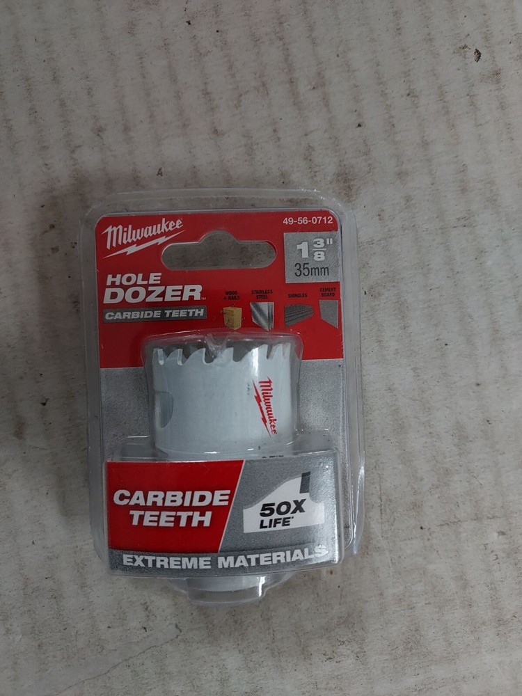 The Milwaukee Hole Dozer Hole Saw features Rip guard, the strongest tooth form in the industry, backed by the Rip guard limited lifetime tooth break warranty. Each tooth is built with more steel behind the cutting edge for added strength. The Rip Guard warranty on tooth breaks is a first for the hole saw industry. The added tooth strength along with 8% cobalt give added life to the teeth, allowing for increased productivity on the jobsite, as well as continued hole quality. The Hole Dozer includes Plug Jack, an all access slot design that allows for full access during plug removal. The Plug Jack gives access lower into the cup for thick material and higher towards the teeth for thin material. With multiple positions to apply leverage and better plug access, Plug Jack increases productivity Milwaukee Hole Dozer Bi-Metal Hole Saw, 1 3/8in., Model# 49-56-0072 Northern Tool Item# 3392991 Item Weight: 0.2100 lb(s) Manufacturer: MPN: Warranty: . Product Summary: The Milwaukee Hole Dozer Hole Saw features Rip guard, the strongest tooth form in the industry, backed by the Rip guard limited lifetime tooth break warranty. Each tooth is built with more steel behind the cutting edge for added strength. The Rip Guard warranty on tooth breaks is a first for the hole saw industry. The added tooth strength along with 8% cobalt give added life to the teeth, allowing for increased productivity on the jobsite, as well as continued hole quality. The Hole Dozer includes Plug Jack, an all access slot design that allows for full access during plug removal. The Plug Jack gives access lower into the cup for thick material and higher towards the teeth for thin material. With multiple positions to apply leverage and better plug access, Plug Jack increases productivity and eliminates wasted downtime between holes. For fast, tool-free change-outs, use Milwaukee's universal Quick-Change Arbors. 49-56-7210, 49-56-7240, 49-56-7250 and 49-56-9100. Payment Instructions You can pay us securely through eBay. All orders will contain an invoice/receipt. IMPORTANT: We will not honor requests to remove invoices or receipts from packages. No exceptions ON U.S. PURCHASES, Northern currently collects sales tax on purchases shipped to all states except: Alaska, Delaware, Montana, New Hampshire, Oregon Shipping Information This product will be shipped by Parcel. Parcel Shipping: Ground Shipped items must be sent to a physical address and cannot be sent to PO boxes. If a PO box address is submitted without a physical address it may delay your order. We cannot ship to APO/FPO boxes. Please note that we do not ship items on weekends or holidays. More information on shipping and handling times can be found on our Store Policies Page . Customer Care We want you to be satisfied with your purchase; please notify us by email if you have any concerns. Before you send an email message, please check our Help Section . We may already have an answer to your question! We are available to answer your email questions Monday through Friday from 8am - 3pm CST, excluding holidays. If your email is sent on a weekend, holiday or after business hours, we will respond to you on the following business day. Returns may be accepted on most items within 30 days of receipt of the item. All returns require authorization from us. Some returns are charged a 15% restocking fee. Please click the Shipping and Payments tab on this item for specific return information and full details. About Our Products Product Warranty: Warranty information and contact details can be found on our Store Policies Page. We are working hard to ensure that the information provided on the eBay product advertisements is accurate and up-to-date. We reserve the right to correct ad errors and/or omissions. Pricing and availability is subject to change without notice. No