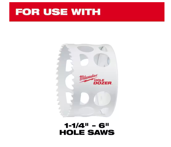 This arbor is a game-changer for quick hole saw swaps—smooth operation, solid grip, and no slipping. The large thread design makes changing bits effortless, and the bi-metal construction ensures durability. Perfect for pros and DIYers who need reliability and speed on the job. Milwaukee nailed it with this one!