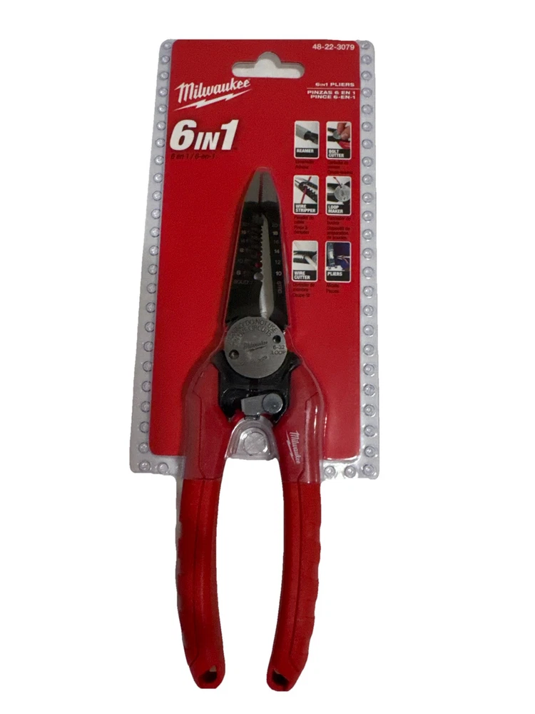 Milwaukee 48-22-3079 7.75in Combination 6-in-1 Wire Stripper/Cutter Pliers - NEW This is the Milwaukee 48-22-3079 Combination Pliers, measuring 6 inches in size with insulated handles. It features cushion grip, insulated design, and functions as a wire stripper/cutter. Made of stainless steel and metal, this tool is red in color with an item length of 7.75 inches and a weight of 0.67 pounds. Ideal for various tasks, this 6-in-1 plier is a new addition to your toolbox. · · · SHIPPING · · · Get free shipping on your order! We ship via reliable carriers like UPS, FedEx, and USPS We ship to the continental US (excluding PO boxes and APO/FPO addresses) Orders are usually shipped within 3 days or less. Items valued at $50 or more are subject to signature request. High value/special items are recorded with images by their unique serial number. Tracking number is sent personally to each customer. · · · RETURNS · · · Returns are accepted within 7 days of purchase Items must be in original condition and packaging- NO EXCEPTIONS · · · PAYMENTS · · · We accept all payment methods through eBay's payment system Please pay promptly after winning an auction so we can ship your item faster · · · FEEDBACK · · · Customer satisfaction is a top priority for us. If you have any issues with your order, please let us know. We will make every effort to resolve any problems and ensure you are satisfied. · · · Contact US · · · We appreciate your business. If you have any questions, please message us through eBay and we will respond within 24 hours on weekdays. Feel free to browse our eBay store for other available items. Thank you again for choosing to shop with us! · · · Suggested Products · · · Milwaukee 48-22-3078 7IN1 High-Leverage Combination Pliers $27.00 Milwaukee 8 In. Hex-Jaw Pliers- Brand New And Sealed- Free Shipping $20.50 Milwaukee 48-22-6106 Comfort Grip 6 Inch Diagonal Cutting Pliers Iron Carbide $19.50 Milwaukee Tool 48-22-3044 10-24 Awg Compact Comfort Grip Wire Stripper & Cutter $20.25 Milwaukee Tool 48-22-3081 12-16 Awg Nm Dipped Grip Wire Stripper & Cutter $21.00 Milwaukee 48-22-6107 Rust Resistant 7 Inch Diagonal Wire Cutting Pliers- Sealed $17.50 Add suggested items to your listings - Check it out on 3Dsellers.com eBay listing template by 3D sellers.com - Try for Free!