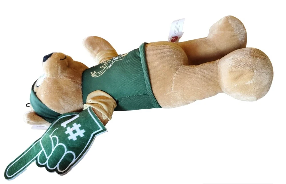 I ALWAYS SHIP NEXT DAY OR SAME DAY SO YOU CAN GET YOUR ITEM FASTER THAT'S INCLUDING WEEKENDS AS WELL I COMBINE AND REIMBURSE ALL COMBINED SHIPPING Cheer on the Milwaukee Bucks with this adorable stuffed plush sports bear! Perfect for any unisex children fan, this 9 inch plush figure is made of high-quality materials and features the team's signature green color. Whether you're a die-hard NBA fan or simply looking for a cute addition to your sports memorabilia collection, this plush bear is a must-have. Represent your favorite team with pride and showcase your love for the National Basketball Association (NBA) with this officially licensed product. Made in China, this plush figure is ideal for any NBA fan, regardless of age or gender. Don't miss out on the opportunity to add this unique product to your collection!