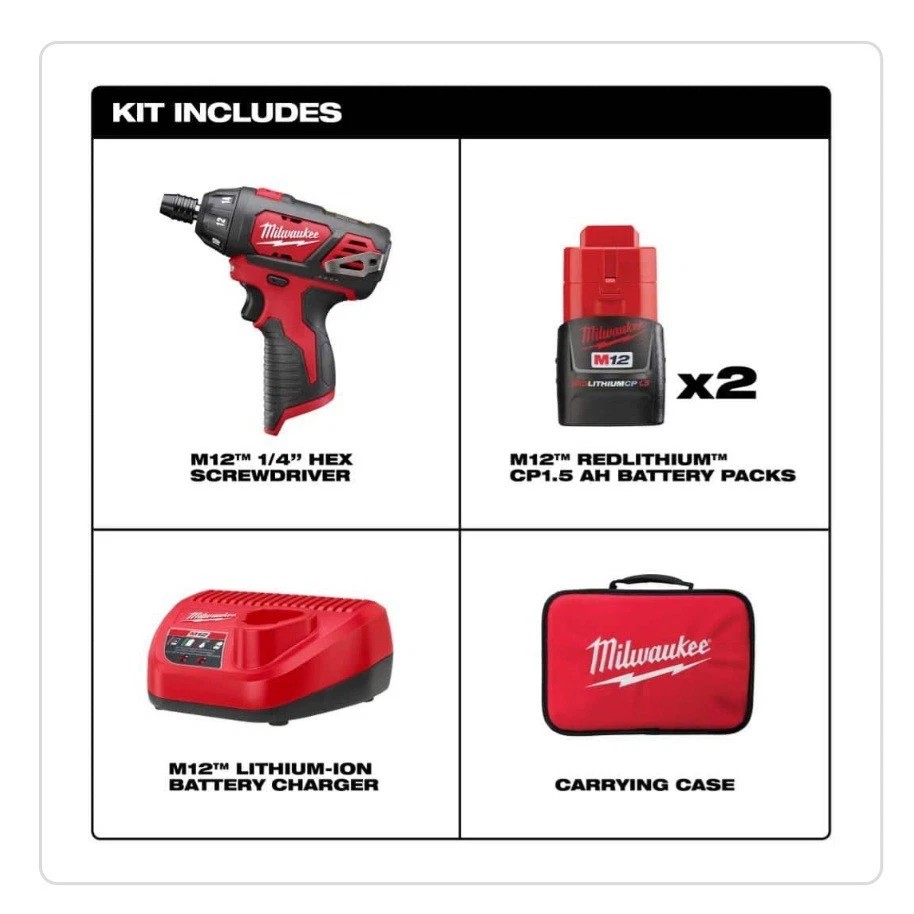 Milwaukee M12 12V Lithium-Ion 1/4in. Hex Screwdriver Kit (2401-22)