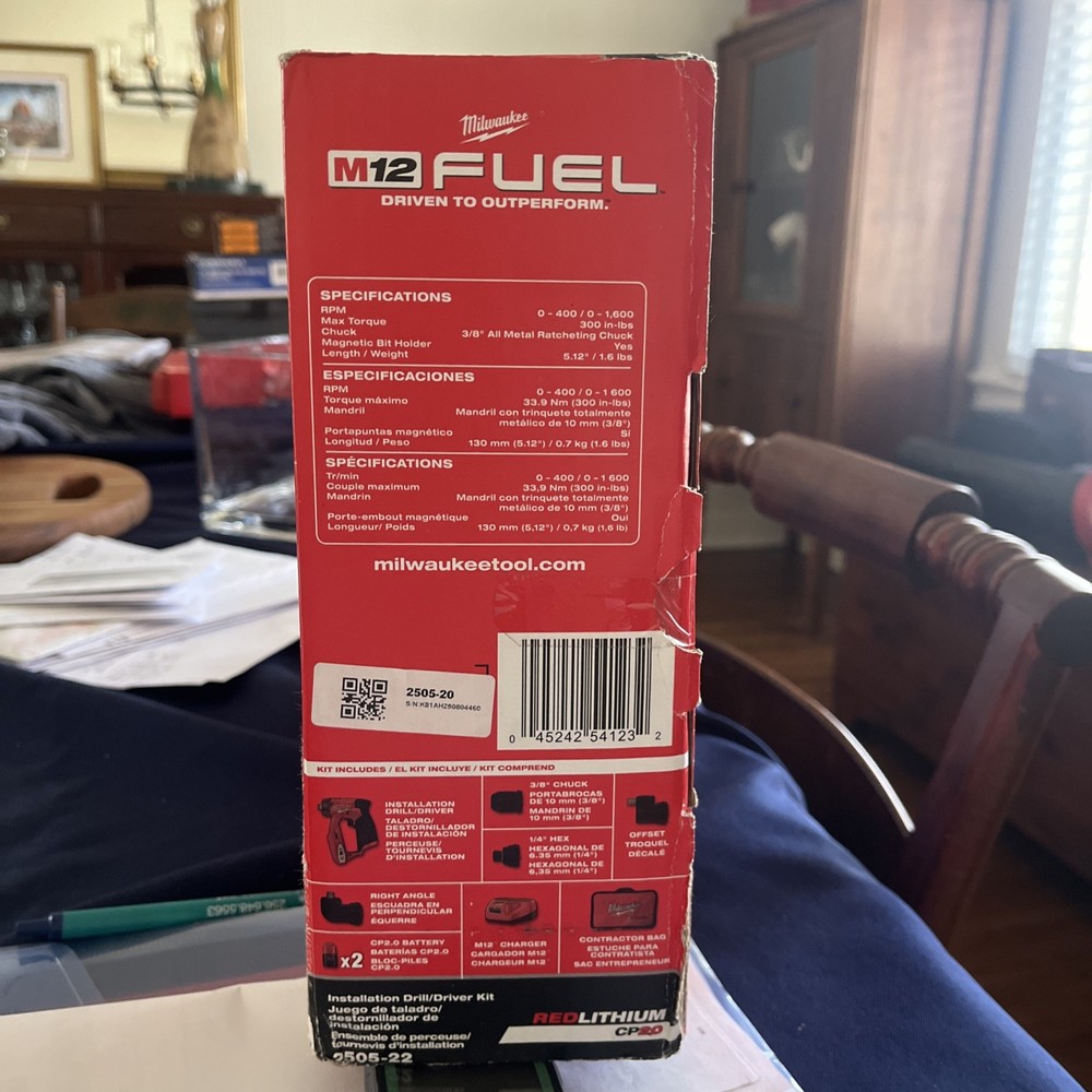 The Milwaukee M12 2505-22 Fuel Cordless Drill/Driver Installation Kit is a versatile power tool set that includes 9 items, including a battery charger, batteries, attachments, and a case. This drill driver features a maximum torque of 300 in-lbs and operates on Lithium-Ion battery technology with a power source of 12V. With a compact design and lightweight construction, this Milwaukee tool is perfect for home and garden projects. The set includes two batteries with a capacity of 2 Ah, making it convenient for extended use.