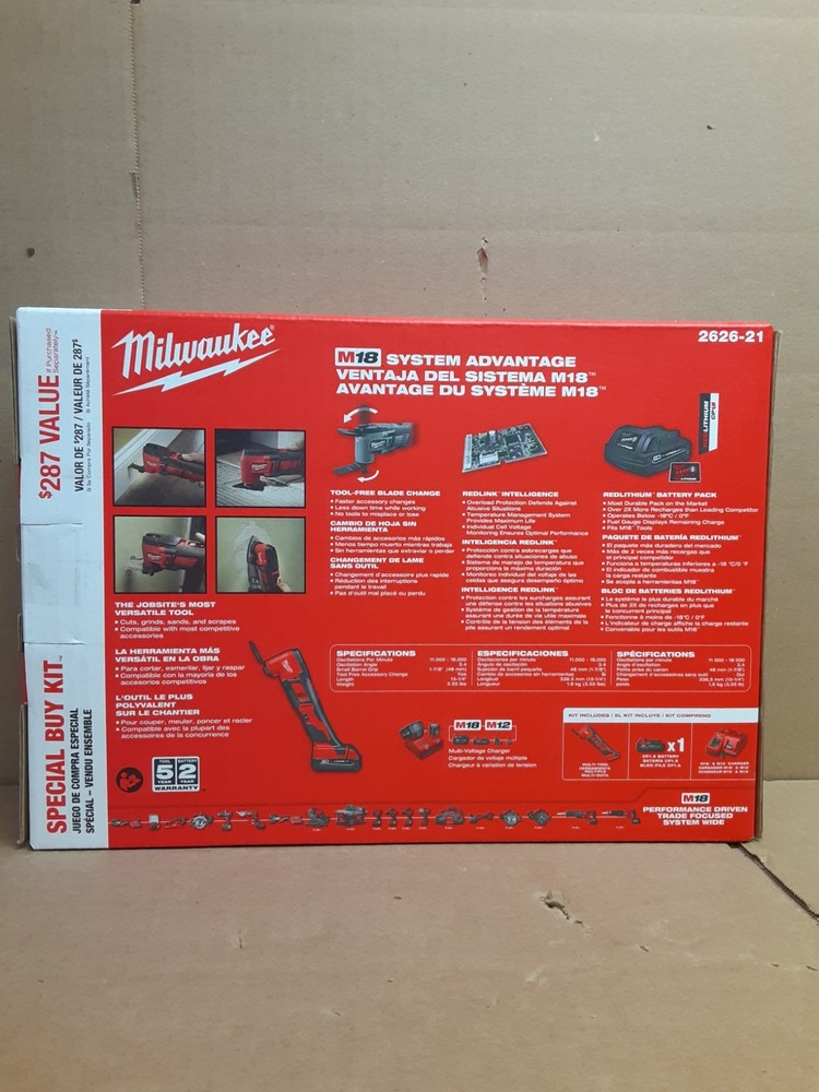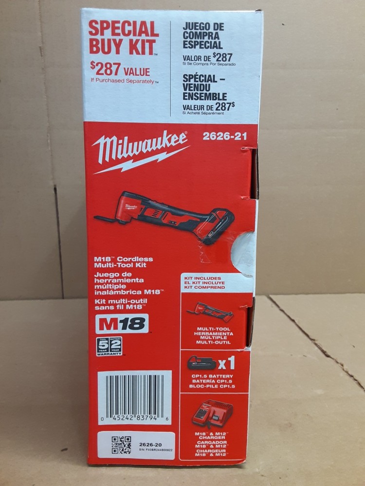 The Milwaukee M18 Cordless Multi-Tool Kit 2626-21 is a versatile and powerful tool set designed for home and workshop use. With Lithium-Ion battery technology and a brushless motor, this multi-tool delivers efficient and reliable performance. The kit includes 1 tool with a 5-year manufacturer warranty and is backed by the trusted Milwaukee brand. Its compact design and red color make it easy to locate and store, while the 18V voltage ensures consistent power for various tasks. Whether you are a professional or a DIY enthusiast, this multi-tool kit is a valuable addition to your toolbox.