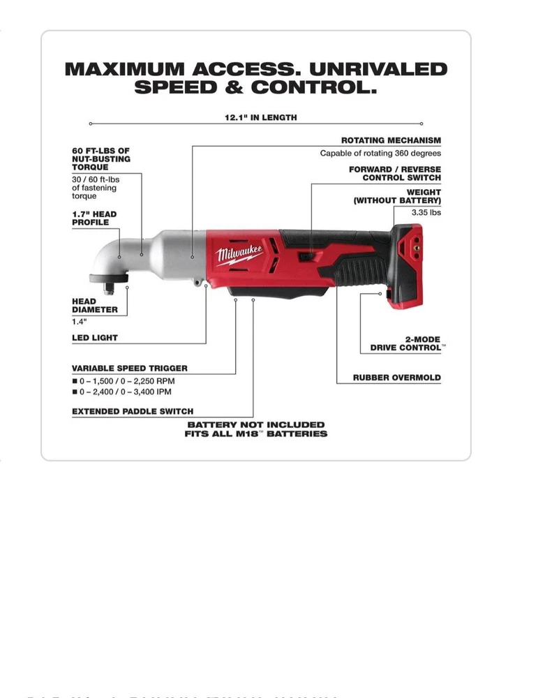 Milwaukee M18 Cordless 2-Speed 3/8" Right Angle Impact Wrench 2668-20 Tool Only