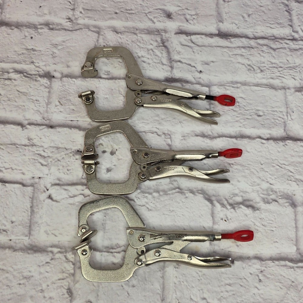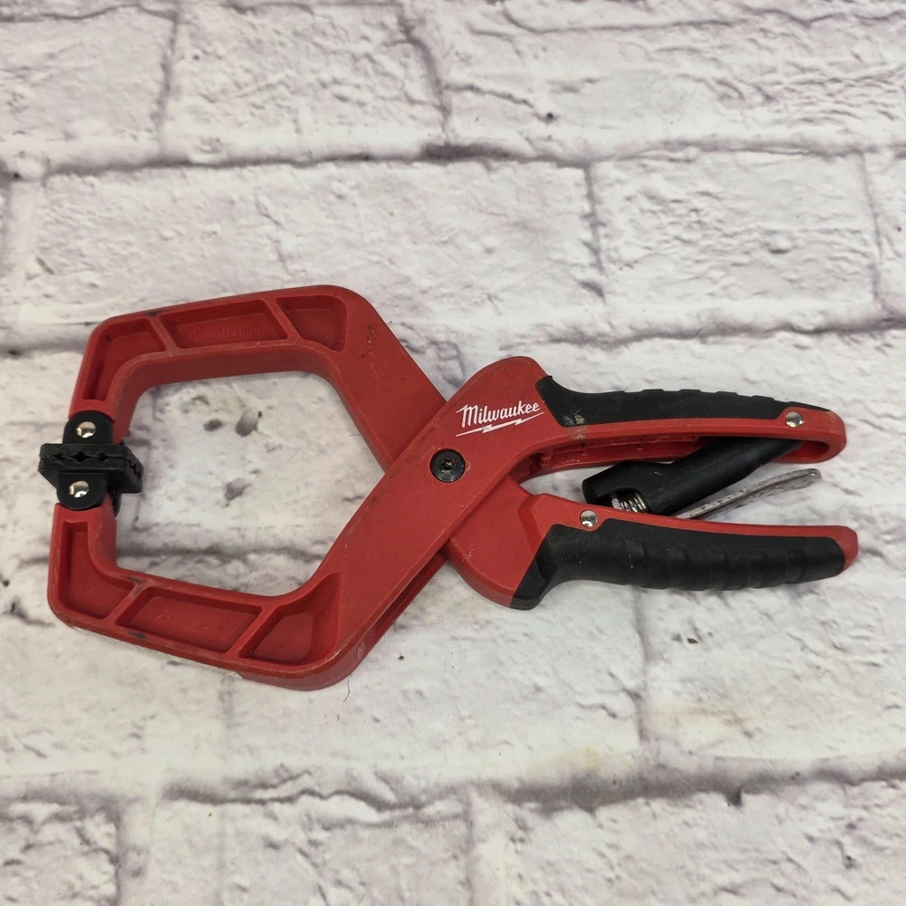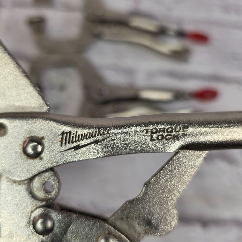 Milwaukee Torque Lock Locking C-Clamps 48-22-3531 & Red Handle Clamps Bundle Whether you're tackling a demanding woodworking project or securing metal parts for welding, this Milwaukee set has your back. The locking C-clamps offer precise adjustments with Torque Lock, while the red-handle clamps provide a firm grip. Made with durable materials, this set stands up to heavy-duty use, telling the tale of reliability and craftsmanship. • Includes 3 Torque Lock C-clamps and 2 red-handle clamps • Adjustable grip for precise pressure control • Durable construction for long-lasting use • Red accents for easy visibility • Comfortable handles for reduced strain Minor rust on some metallic parts. Measurements: Approx. 8-11 inches depending on clamp type. We offer Fast and Free Shipping! We are a small family-owned business, and we truly appreciate your support. To help protect the environment, we use recycled and eco-friendly packaging materials whenever possible—carefully packing your item while reducing waste.