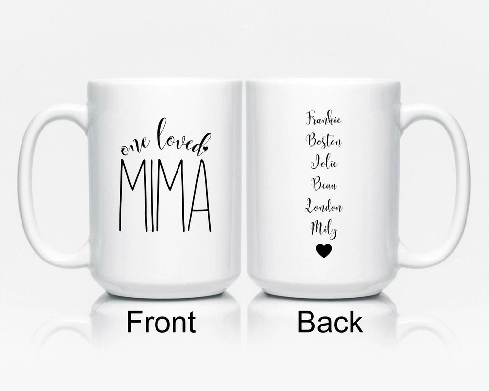 Mima Gift One Loved Mima Mug Grandmother Mugs Great Grandma Gift Product Details.. This high quality 11oz. ceramic white mug has a premium hard coat that provides crisp and vibrant color reproduction sure to last for years. Perfect for all hot & cold beverages. The highest quality printing possible is used. It will never fade no matter how many times you wash it. Material: 100% Ceramic. Print both sides. Dishwasher and Microwave Safe. High Gloss + Premium White Finish. Printed in the U.S.A. Personalized & Custom. We support personalized and custom mug to add custom, when placing an order, you can add notes to the "order note" in shipping address section. Also you can contact us directly via message. Shipping Info. Ready to ship in 1 to 2 business days, All products are made-to-order and proudly printed in the United States. Shipped by USPS and DHL, You will receive your order in 5-7 days. Replace & Refund. All products are defective during shipping broken, chipped will be replaced free of charge. You are not satisfied with the product, we will refund 100% money to you. If any other issues arise, please do not hesitate to message, we would be more than happy to assist you.