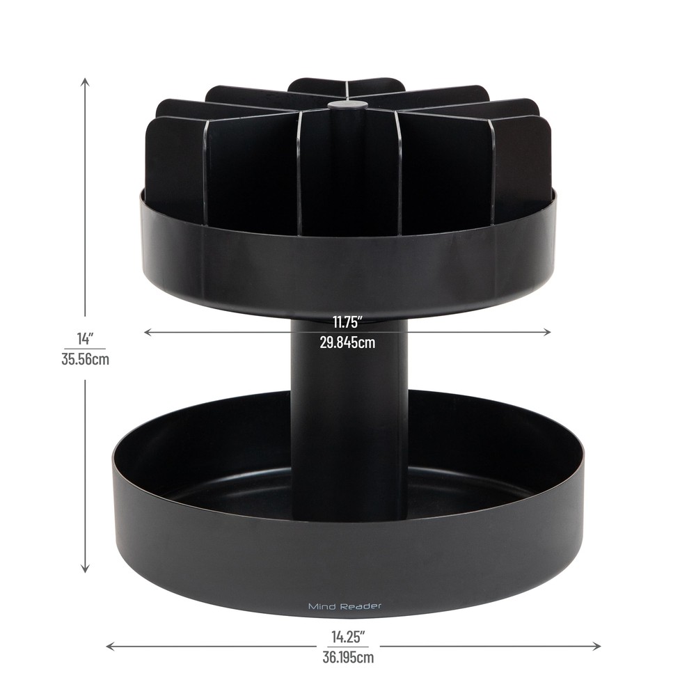 Mind Reader 2-Tier Snack Carousel, Countertop Organizer, Snack Tray, Breakroom, Kitchen, 14.25"L x 14.25"W x 14"H, Black Versatile snack storage: This organizer is designed to store various types of bagged snacks, such as granola bars, protein bars, chips, pretzels, popcorn, and more Convenient grab-and-go: Placing this organizer on your countertop saves you time by making snacks easily accessible to everyone, allowing them to quickly grab what they need Stylish and functional design: The tiered-shelf design adds a touch of style to your space, while the neutral color seamlessly blends with any existing home, office, or breakroom decor Durable and easy to clean: Made from strong plastic, this organizer is built to withstand daily use and can be easily cleaned with warm water and mild dish soap, ensuring long-lasting durability Optimal dimensions: Measuring 14.25 inches long x 14.25 inches wide x 14 inches tall (36.20 x 36.20 x 35.56 centimeters), this snack organizer fits neatly on any surface, providing a compact and organized solution for storing your favorite snacks 360-Degree Rotating Snack Organizer Add convenience to snacking with this versatile snack holder. This portable organizer provides a range of storage options and is a perfect addition to your office breakroom or home kitchen. Whether hosting a party or barbecue, or catering to guests in hotel lobbies or lounges, this snack caddy ensures easy access to snacks for everyone. Featuring a 360-degree swivel design, you can grab snacks on-the-go without rifling through the contents. Its tiered-shelf design enhances visibility, letting you see all your snack options at a glance. The organizer boasts 12 compartments on the upper tier for smaller items and a larger open compartment on the bottom for bulkier snack bags. Fill it with protein bars, granola bars, snack bags, or any other snack and condiment of your choice. The snack holder's durable plastic construction guarantees sturdiness for everyday use. Lightweight and easy to move around, offering versatile use wherever needed. This rotating snack organizer makes an excellent gift for housewarming parties, office kitchens, or hospitality professionals. Shipping We offer FREE shipping on all orders! We ship within Three business days of payment, usually sooner. We use a selection of shipping services such as UPS, FedEx, USPS etc. We only ship to the lower 48 states, no APO/FPO addresses or PO Boxes allowed. Local pickups and combined shipping options are not provided at this time. Return You can return a product for up to 30 days from the date you purchased it ONLY if it's in the original condition. The product cannot be used or open. Any product you return must be in the exact same condition you received it and in the original packaging. Please keep the receipt. Feedback Customer satisfaction is very important to us. If you have any problem with your order, please contact us and we will do our best to make you satisfied. Contact Us If you have any queries, please contact us via ebay. We usually respond within 24 hours on weekdays. Please visit our eBay store to check out other items for sale! Thank you for shopping at our store.