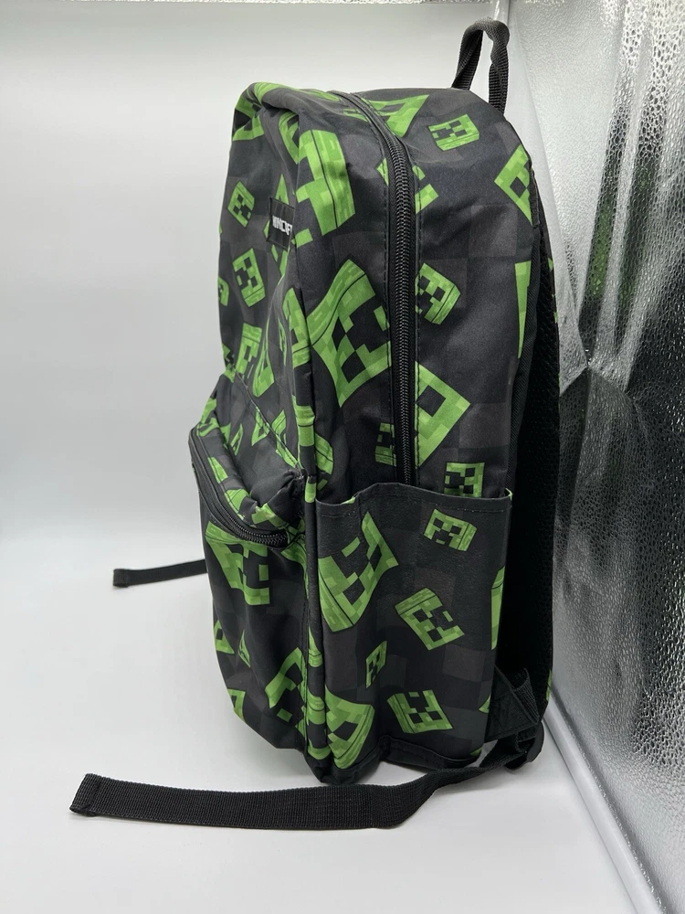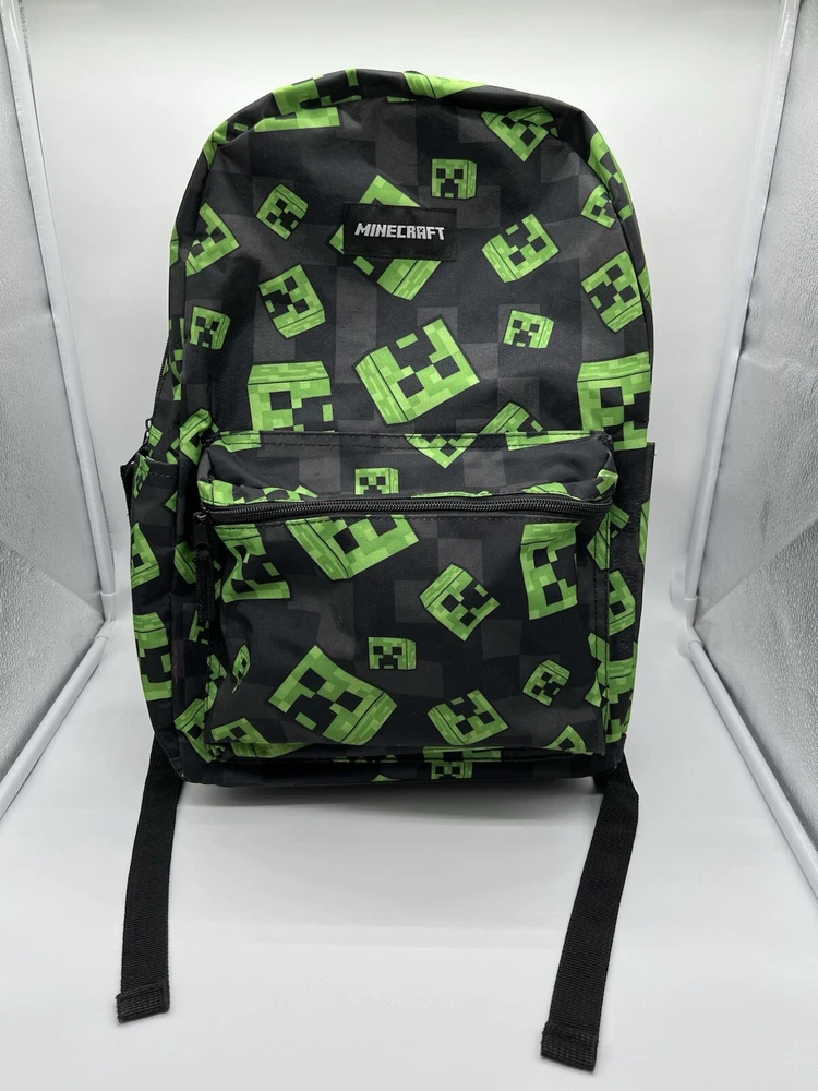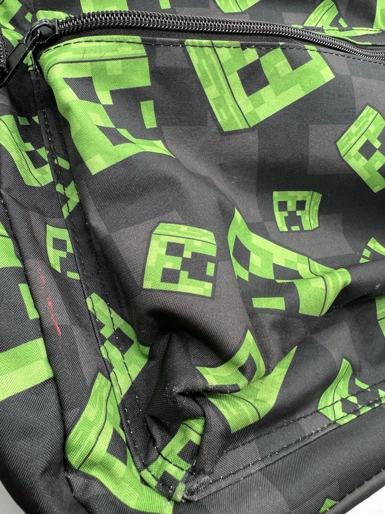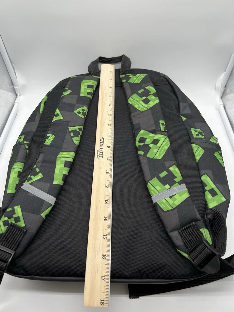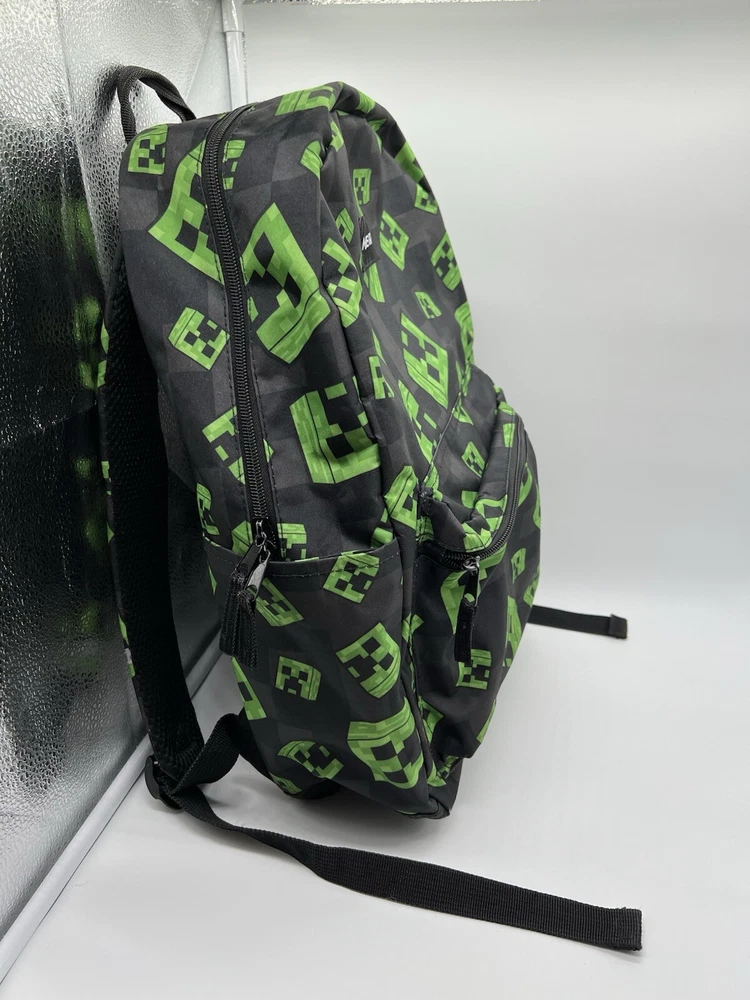 Minecraft Creeper School Backpack Book Bag 17" Boys Green & Black School Bag Used, Fair Condition, dirty spots same like pictures showed. Item: N29(7)
