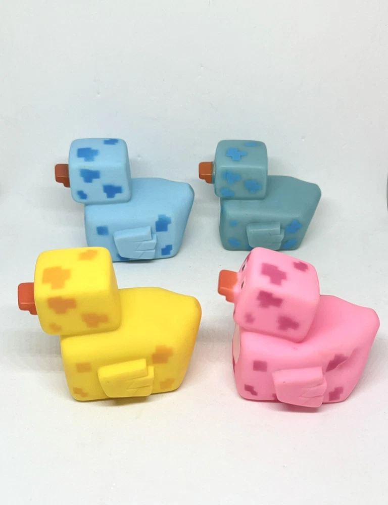 Minecraft Rubber Ducks Pixelated Bath Pool Jeep Toy Set of 4. Note: the pink duck has lost some air and has wear;shown in photos! Items have marks/scratches; shown in photos! Thank you for stopping by!