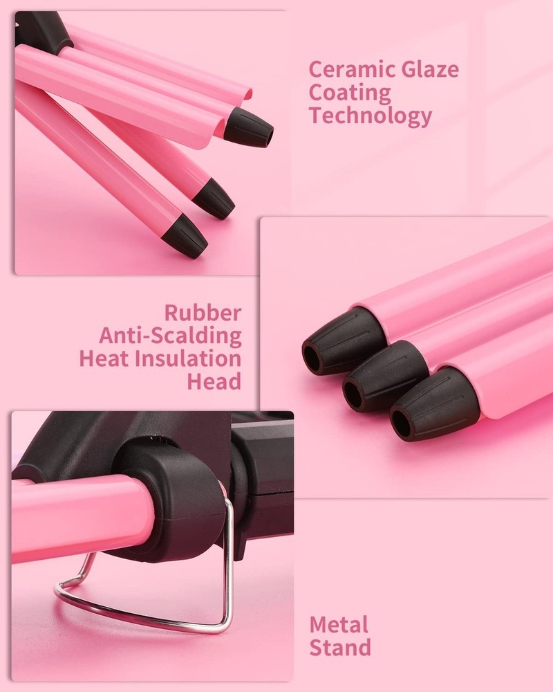 Mini 3 Barrel Curling Iron, Dual Voltage Triple Barrel Hair Waver for Home and Travel, Ceramic Tourmaline 1/2 Inch, Pink Product Details Color: Pink Brand: EVERDAZZ MPN: MX-539A UPC: 657439597863 EAN: 0657439597863 Product Benefits: Curling Shape: Barrel Brand: EVERDAZZ Hair Type: All Material: Ceramic Product Dimensions : 10.63 x 1.97 x 1.97 inches; 9.14 ounces Item model number : MX-539A Date First Available : March 9, 2023 Manufacturer : Qingtian Minghui Electronics Co. Mini 3 barrel curling iron is easy to use and hold compare with 1 inch barrel barrel iron, greatly shorten styling time with less skill 0.5 inch barrel crimper hair iron creates slightly curly waves and increases hair volume. perfect tool for making professional-looking curls that last all day. The 1/2 inch barrel dual voltage hair crimper is perfect for travel, you will be obsessed immediately. Perfect for thin hair types The lightweight mini waver curling wand with one temperature button to produce beautiful thin waves, it is hot enough while not too overheat. Show your fashion and unique hair style at different occasions Our mini waver iron is the perfect solution for women who struggle to curl or wave their hair. Its the hair tool you didnt even know you needed, loved stylist and users like you all over the world