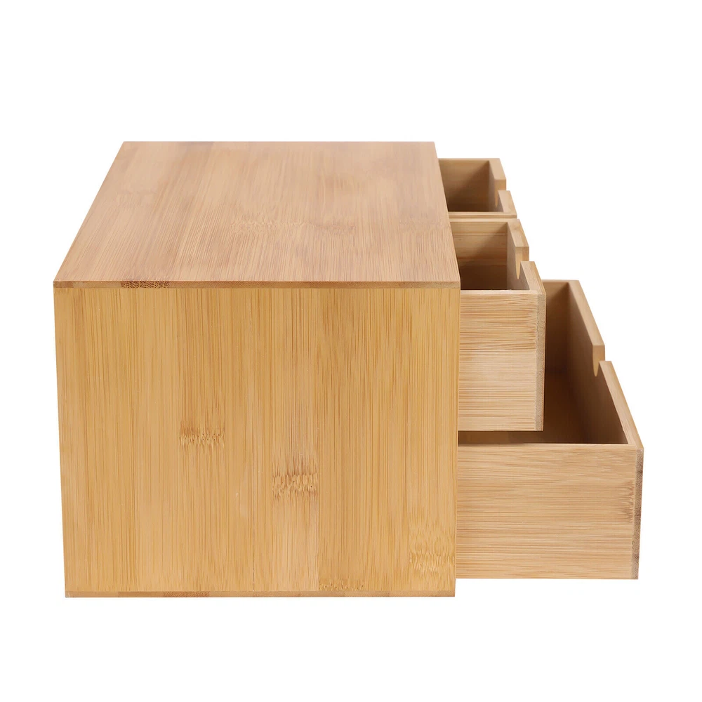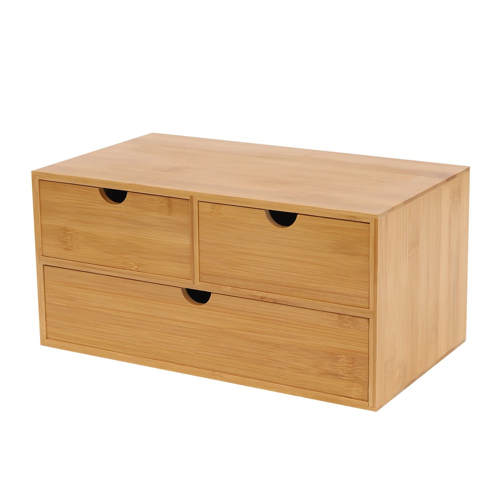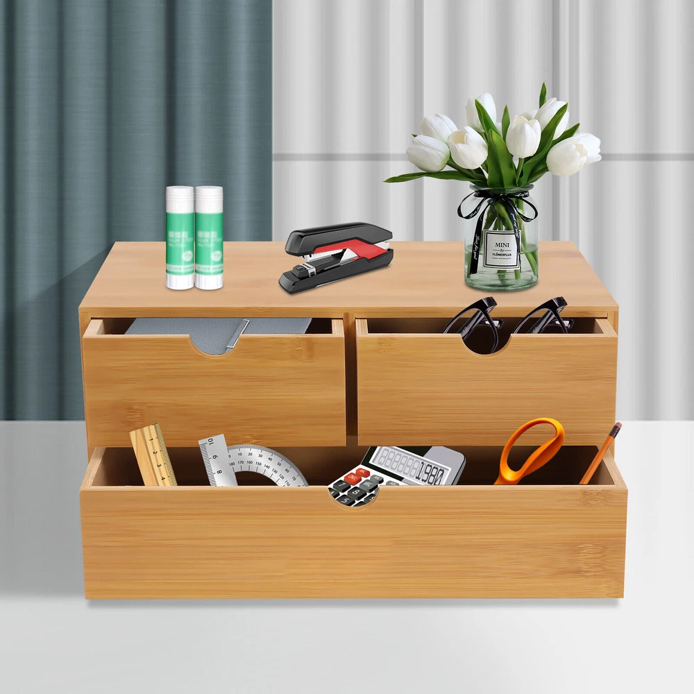 Mini Bamboo Desk Top Organizer 3 Drawers Shelf Desktop Office Home Storage NEW