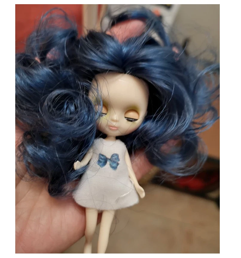 Fashion 4" Mini Blythe Doll Normal Body Shiny Face Blue Hair Eyes Close DIY Toys This is a 4" (10cm) mini doll . Her eyes would close when the doll laid down and open when stand up . Mini doll will give you Dress (random dress) as gift for FREE .