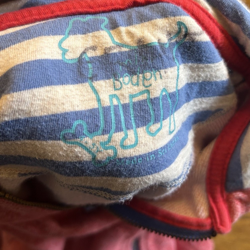 Mini Boden Boys Full Zip Red With White And Blue Striped Hoodie Size 4-5 yr.