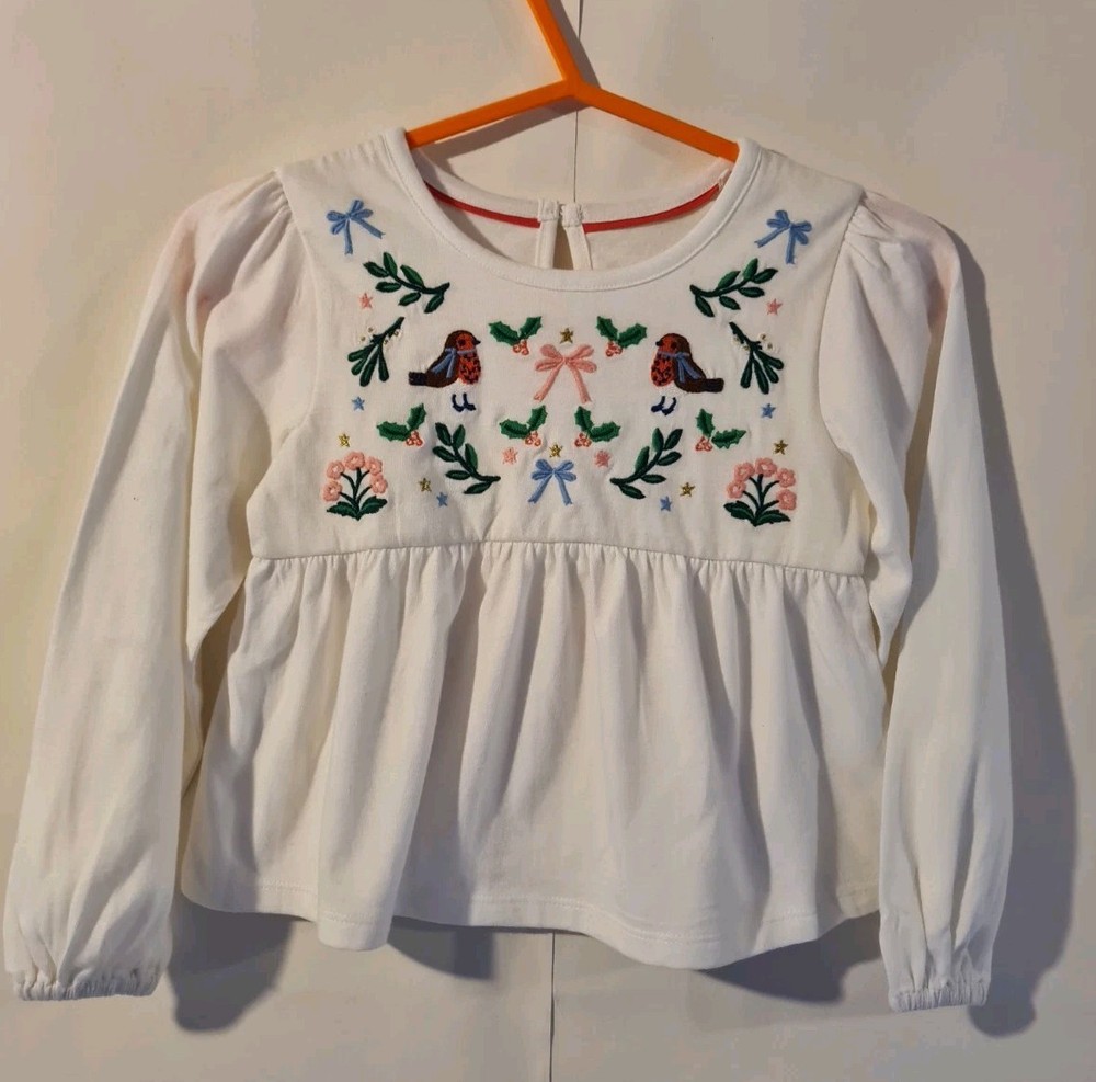 Mini Boden Girls Embroidered Long Sleeve Top Age 5-6 Years Brand New SAMPLE
