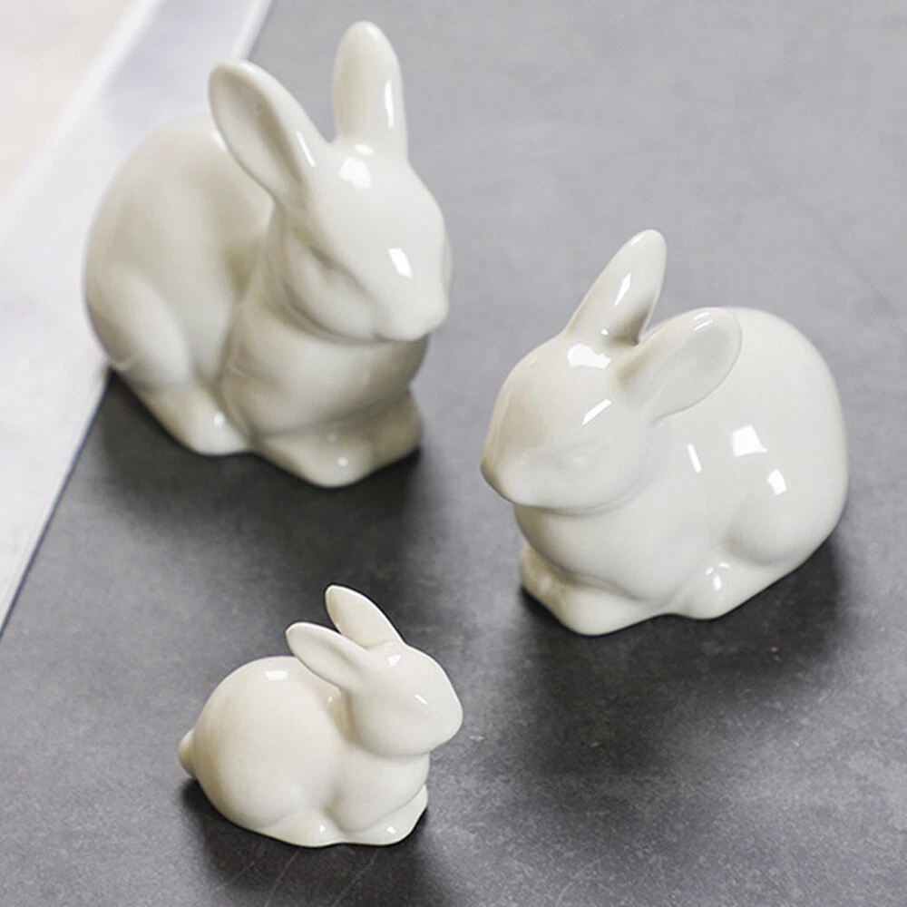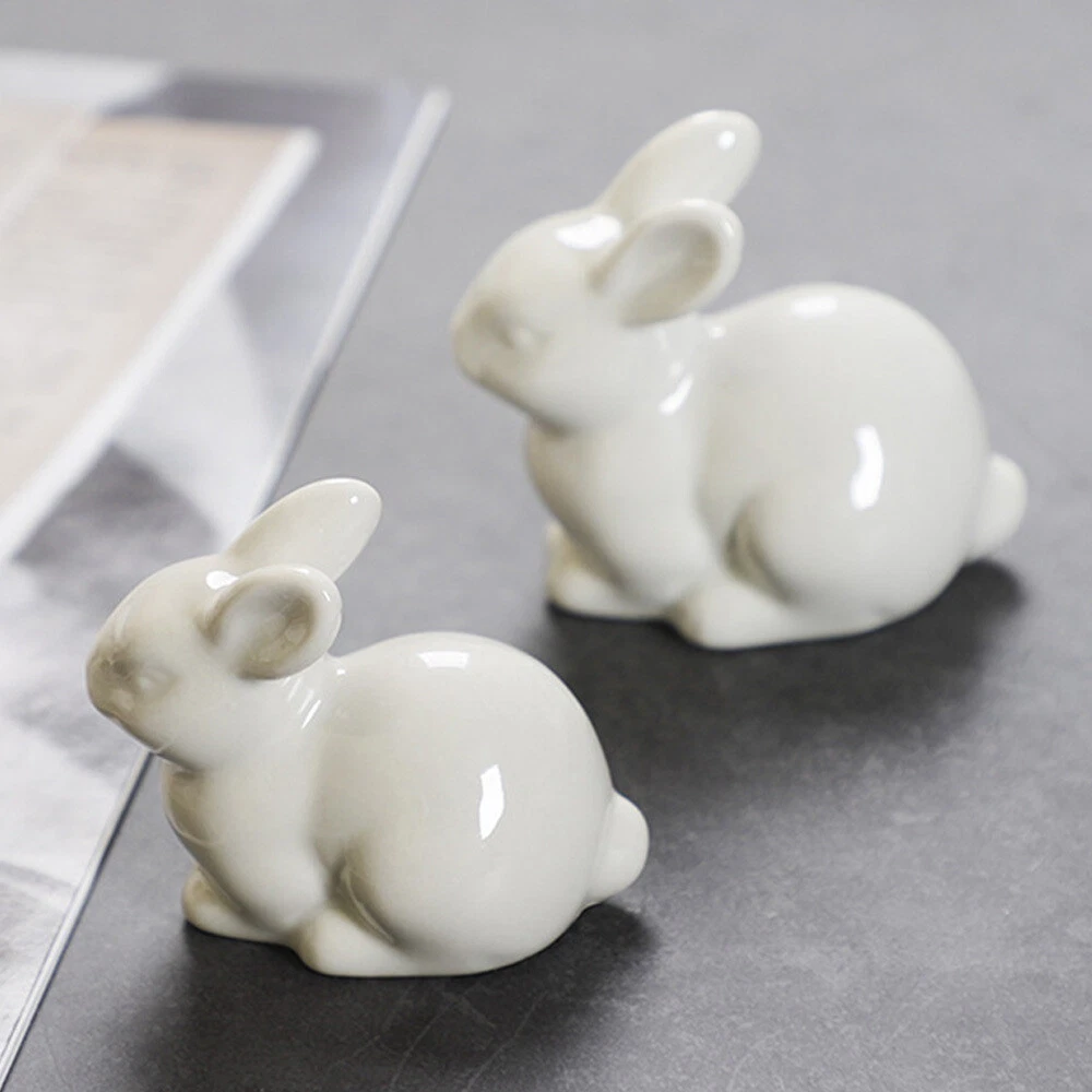 Mini Ceramic Rabbit Figurine Small Statue Home Ornament Figurines Collectibles