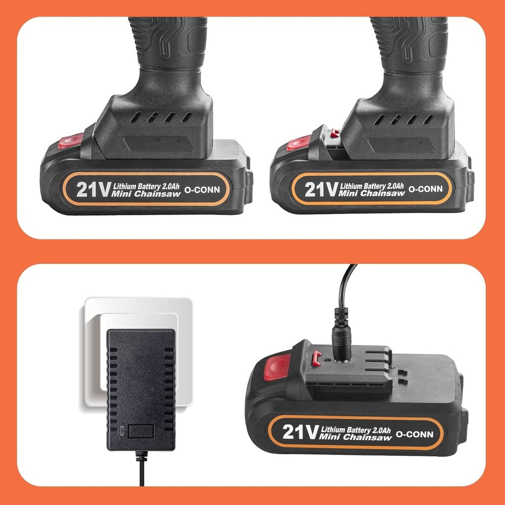 Mini Chainsaw Battery , 2 Pack 21V MAX 2000mAh Rechargeable Battery, Cordless Electric Portable Handheld Chainsaw Accessories Model 1 NOTE: Please check if your original battery interface is consistent with our battery before purchase (refer to pic 3). Can also be used to replace 20V, 21V, 24V, 26V, 28V and 36V battery. NOTE: Due to technical issues, we are unable to update our A+ Content images. Please note that our batteries are 21V MAX, not 24V. We are contacting to resolve this issue, thank you for your understanding. Large Capacity Battery: 2 pack 21V MAX 2000mAh mini chainsaw rechargeable battery . Working Time: 20-30min. Charging Time: 2h-3h. Quality Service: We provide 24×7 after-sales support service to solve any of your worries, please feel free to contact me.