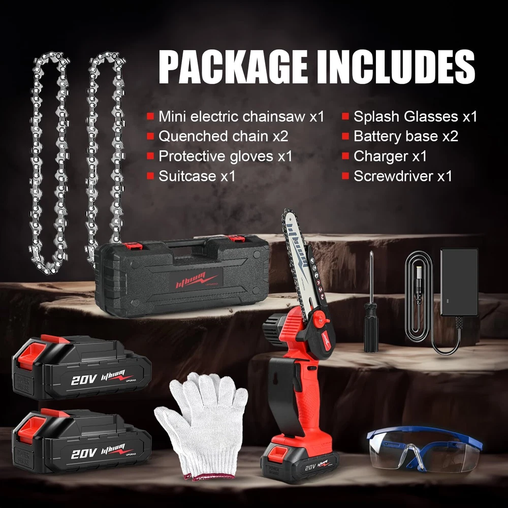 Mini Chainsaw Cordless, 6 Inch Portable Electric Chainsaw, One-Hand Handheld Small Chain Saw for Cutting Wood Trimming and Woodworking- Mini Chain Saw Battery Powered with 2 Batteries 【Lightweight & Cordless Convenience】- Say goodbye to all those messy wires and being stuck in one place. This awesome little mini chainsaw works without any cords, so you can go wherever you please without any limits. No more hunting for power sockets or dealing with those annoying long cords. 【Copper Wire High Efficiency Motor】- This 6-inch mini cordless chainsaw rocks a supercharged copper wire motor that's all about efficiency. It gives your tool some serious juice, with longer running time, extra torque, and more power. That means less wear and tear, and a longer lifespan for your trusty BEEDECK handheld chainsaw. 【Long Battery Life】- Thanks to the powerful battery that comes with it, the electric chainsaw cordless guarantees you can keep on cutting for a long time without any annoying breaks. And the best part? The battery is rechargeable, so you can quickly juice it up whenever you need to and get right back to work without any hassle. 【Tools Free Installation and Tensioning】- Check out this sweet 6-inch cordless mini chainsaw from BEEDECK ! It's got a tool-free design and an automatic chain tensioning device, which means you can easily install or replace the chain without fumbling around for tools. Take it outside whenever and wherever you want, straight out of the box, and start using it hassle-free. 【Slim & One Handed Operation】- Check out this awesome 6-inch cordless mini chain saw! It's super compact and lightweight, weighing only 2.3 pounds, which means it's easy to handle and control. It's perfect for anyone, especially women and the elderly, because you won't get tired even after using it for a long time. The handle is designed ergonomically and has a non-slip rubber grip, so it's super comfortable to hold. 【Safety First】 Before you dive into using this small chainsaw, there's an important step you need to take. You gotta press that safety lock and then pull the trigger. This ensures that you're using the chainsaw correctly and keeps you and your family safe by preventing any accidental starts. And equipped with chain stopper and handle guard stopper to prevent injuries from flying debris. Safety first, folks! 【Friendly Service & Package Included】- We are confident in the quality of the product. We offer 24hrs friendly customer service to keep you away from after-sales worry, and you will get 12 months for the motor and battery guarantee. Package include 1X Mini Chainsaw, 2 x Batteries, 2 x Chain, 1 x Suitcase, 1 x Gloves, 1 x Splash Glasses, 1 x Wall Charger, 1 x Screwdriver, 1 X User Manual. Shipping We offer FREE shipping on all orders! We use a selection of shipping services such as UPS, FedEx, USPS etc. We only ship to the lower 48 states, no APO/FPO addresses or PO Boxes allowed. Local pickups and combined shipping options are not provided at this time. Return You can return a product for up to 30 days from the date you purchased it. Any product you return must be in the same condition you received it and in the original packaging. Please keep the receipt. Payment We accept payment by any of the following methods: PayPal Please pay as soon as possible after winning an auction, as that will allow us to post your item to you sooner! Feedback Customer satisfaction is very important to us. If you have any problem with your order, please contact us and we will do our best to make you satisfied. Contact Us If you have any queries, please contact us via ebay. We usually respond within 24 hours on weekdays. Please visit our eBay store to check out other items for sale! Thank you for shopping at our store.