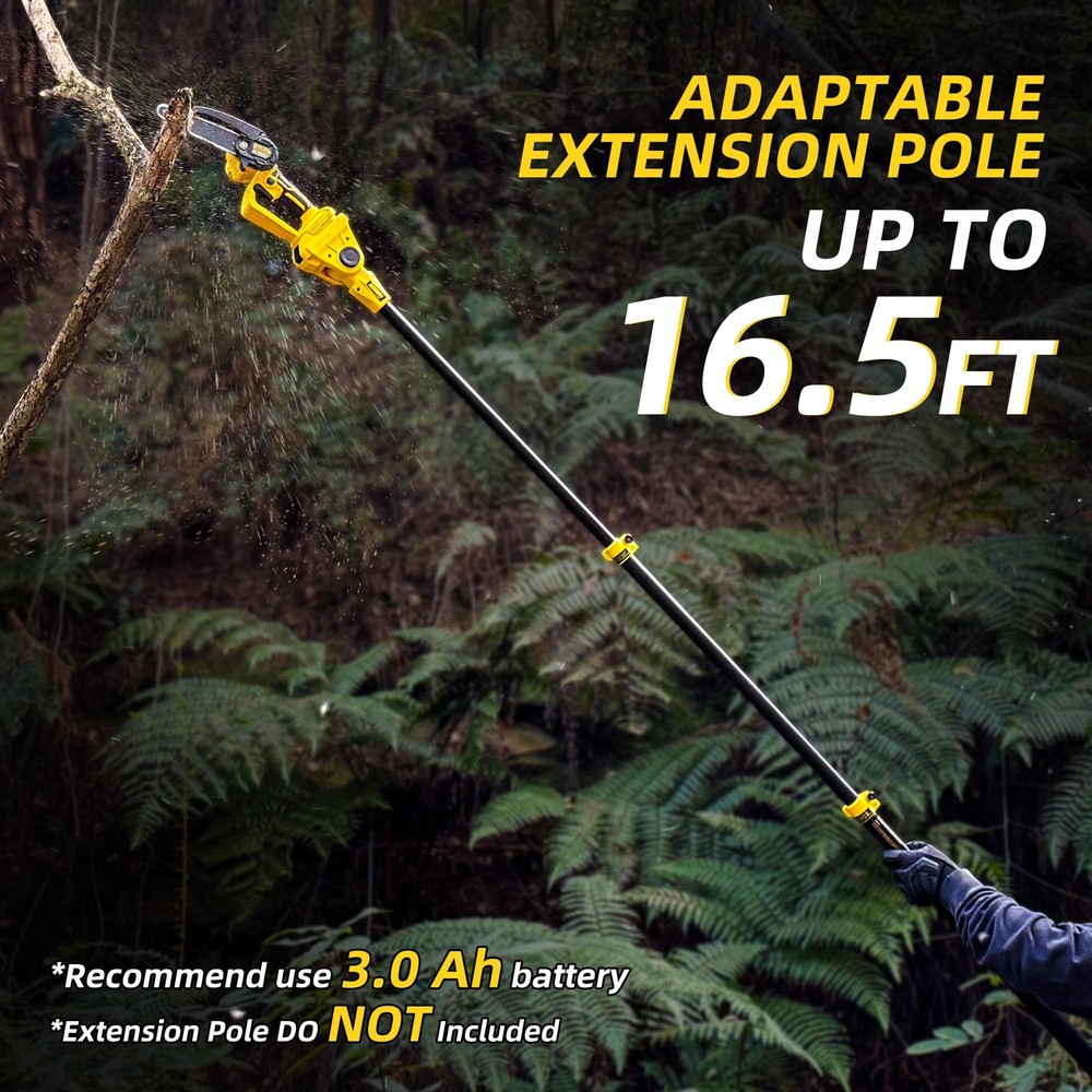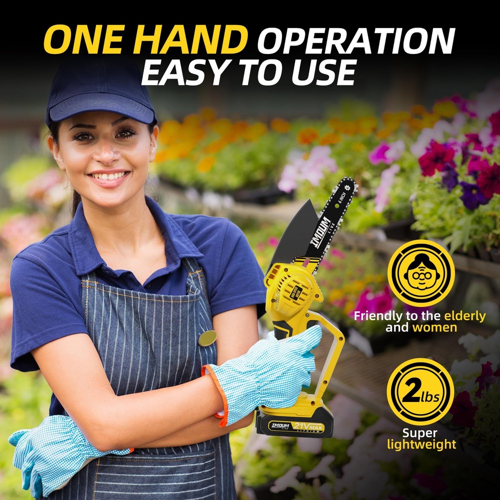 A cool gift gadget for dad, elderly men, husband, yard work lovers, DIYers Powerful & Efficient Cutting: The mini chainsaw features a newly upgraded 2024 550W motor, allowing for up to 30 cuts per charge. Adequate for trimming, pruning, and cutting in the garden or yard Ultra-Lightweight Chainsaw: Only 2lb, its lightweight nature ensures that you can keep going the small saw without any fatigue, making it ideal for seniors and women as a camping/wood/tree saw 2.0Ah Battery: This cordless chainsaw comes with a FCC & CE certified lithium-ion battery, provides an impressive 100 minutes of continuous use for outdoor tasks Pole Saw Attainable: Compatible with the exclusive extension pole, this battery powerd chainsaw can reach up to 16.5ft for easier trimming of higher tree branches (pole sells separately) Safety-First: Featuring a safety lock to prevent accidental starting, this handheld chainsaw also includes a widened hand guard for added protection. Keep your hands safe while working 365-day NO Worry Quality Service: Enjoy a one-year customer service for the chainsaw and battery, with returns or exchanges available within this period. Your satisfaction is our priority Out of the Box: This electric saw comes fully assembled and ready to use. Includes a chainsaw, 2 chains (one installed), a battery, a charger, and a pot of lubricant. Get started on your projects right away