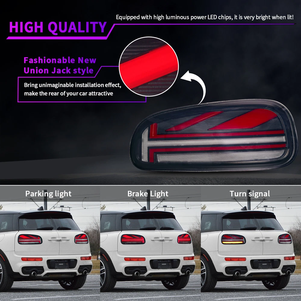These LED tail lights are a fantastic upgrade for the Mini Clubman F54! The sequential turn signals look sleek and modern, and the bright LEDs improve visibility. Installation was a breeze—just plug and play with the factory harness. The ABS/PC construction feels durable, and the IP67 waterproof rating gives peace of mind. Love the smoked black housing with red lenses—adds a sporty touch. Two-year warranty is a nice bonus. Highly recommend for a premium, hassle-free upgrade!